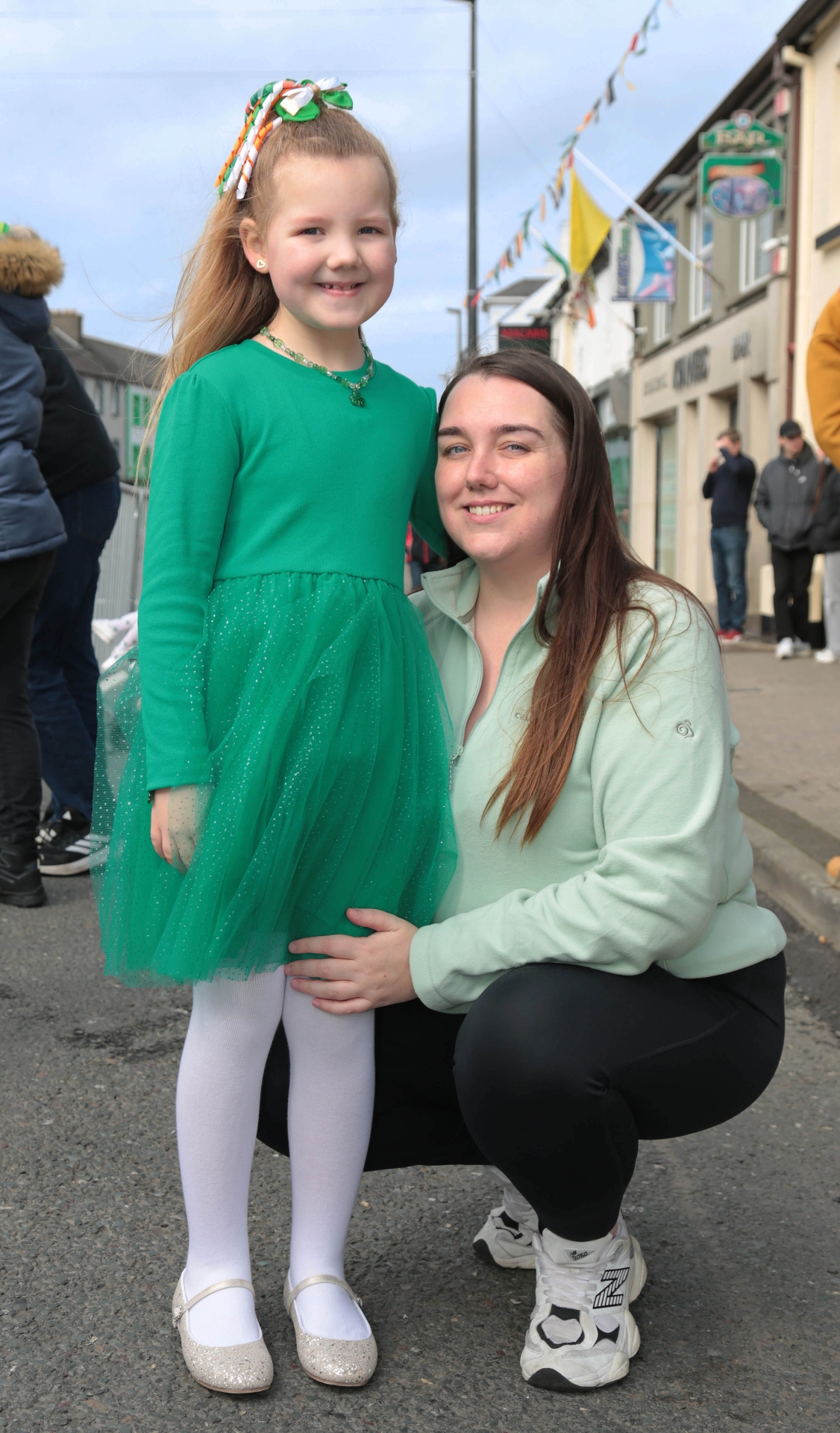 Caption: Scarlett Murray and Sarah Keenan all smiles on St Patrick's Day in Longford Town