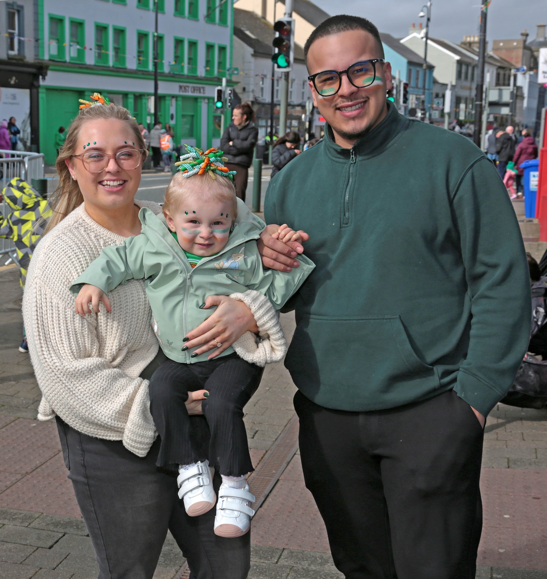 Caption: Rachel Green, Avery and Athony Bispo at the Longford Town St Patrick's Day parade