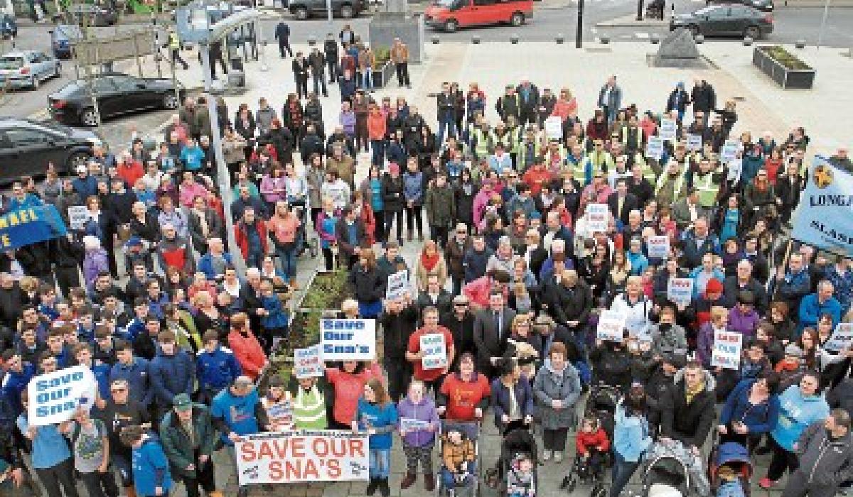A number of demonstrators could be seen brandishing placards carrying the slogan ‘Save our SNAs’ while others sported t-shirts in opposition to the decision.
