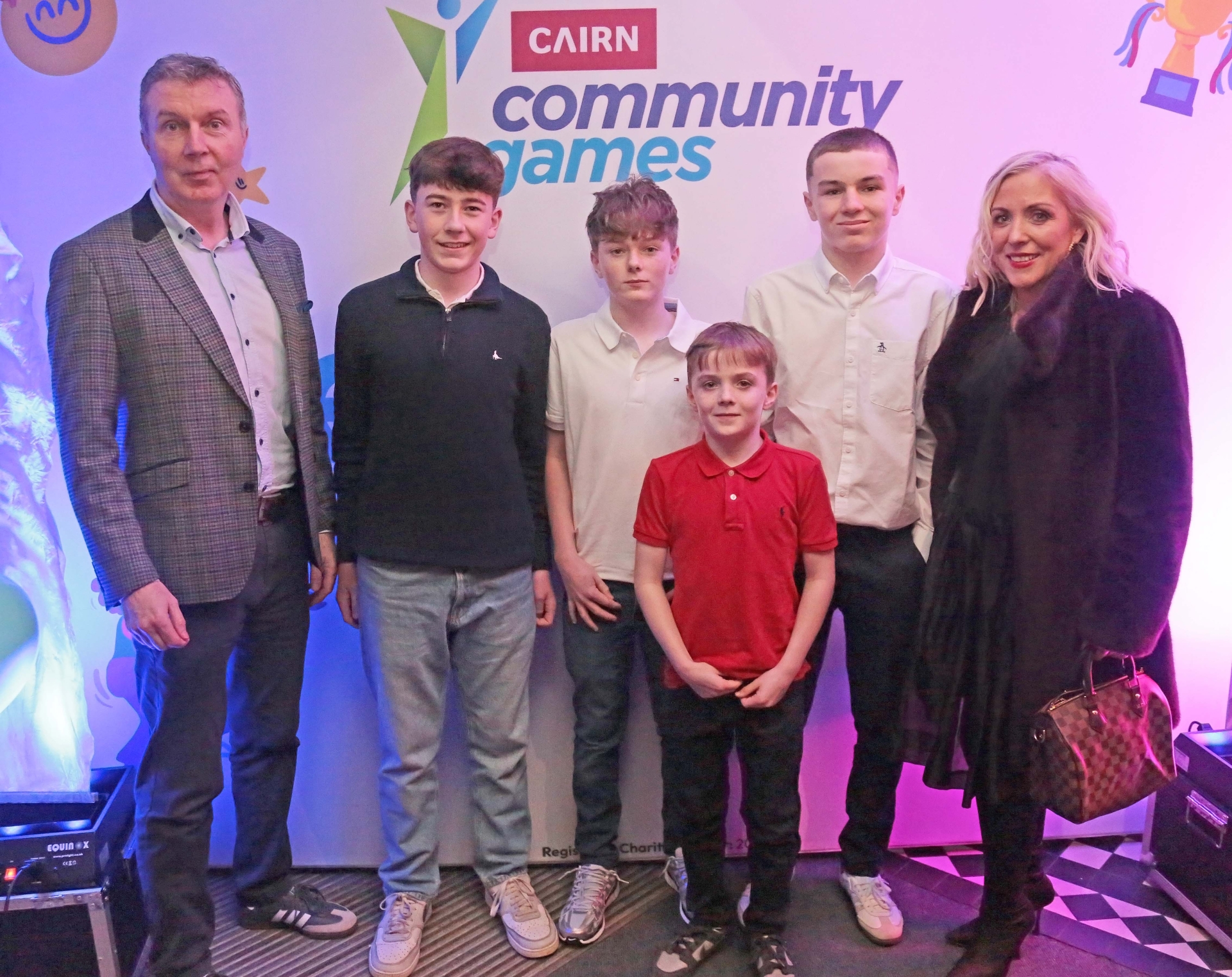 Caption: Peter, Matthew, Finn and Luke Columb, June Donlon and Robert Flynn at the Longford Community Games annual dinner dance and presentation in the Longford Arms Hotel