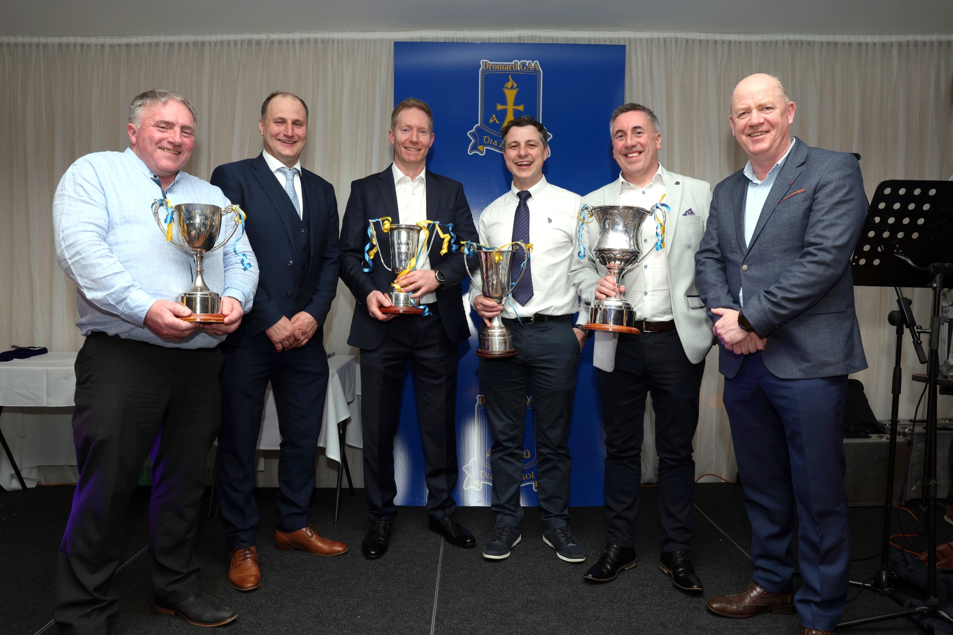 Caption: Dromard GAA Chairperson James McAvennia, Dromard Senior football manager Niall Vance, Minor manager David Harney, Junior player / manager Jamsie Martin, outgoing Ladies manager Cornie McGinley & Longford GAA Chairperson Derek Fahy. Photo: Syl Healy