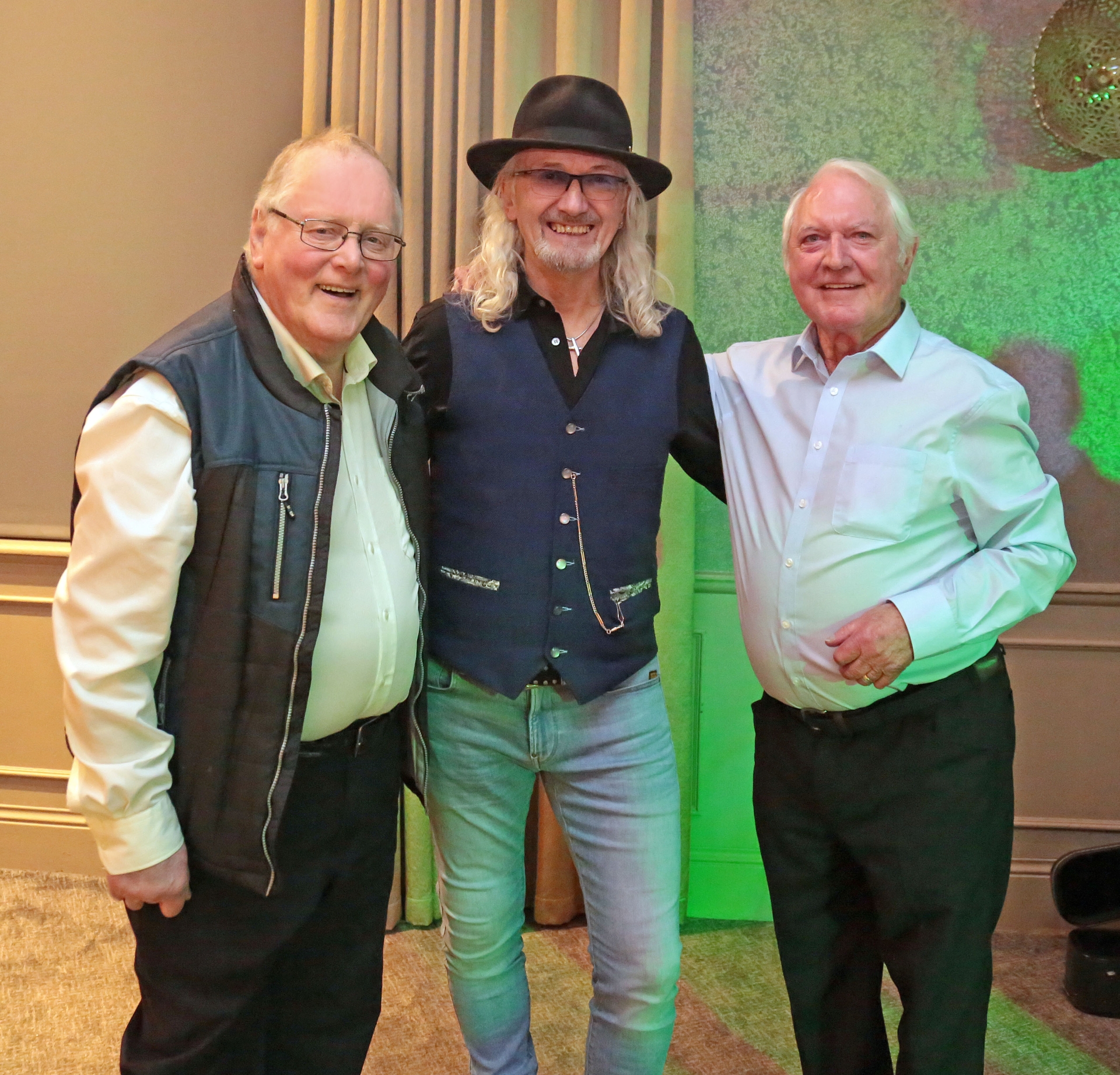 Caption: Sean Mahon, Fitz and Dermot Hegarty at the Longford Live & Local gig in memory of local music legend Paschal Flaherty and in aid of County Longford Hospice Homecare on Easter Monday, April 6 in the Longford Arms Hotel
