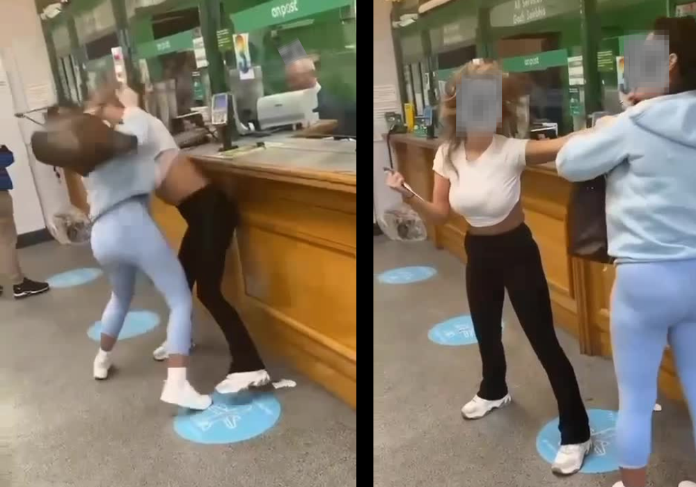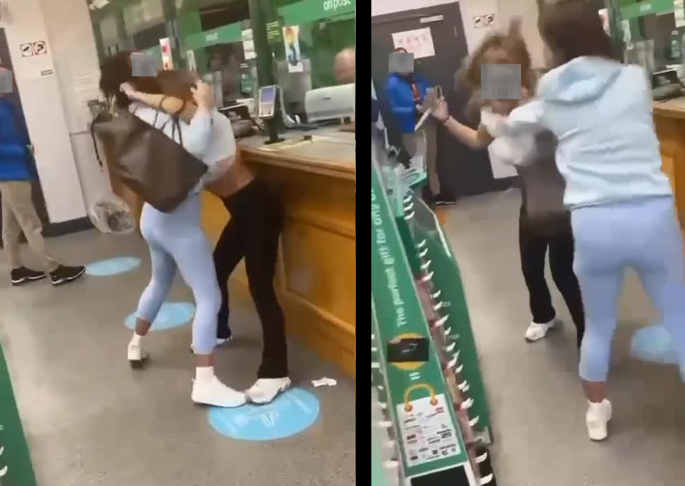 Footage of the altercation in question shows the two women fighting aggressively at the counter as customers and staff go about their business.
