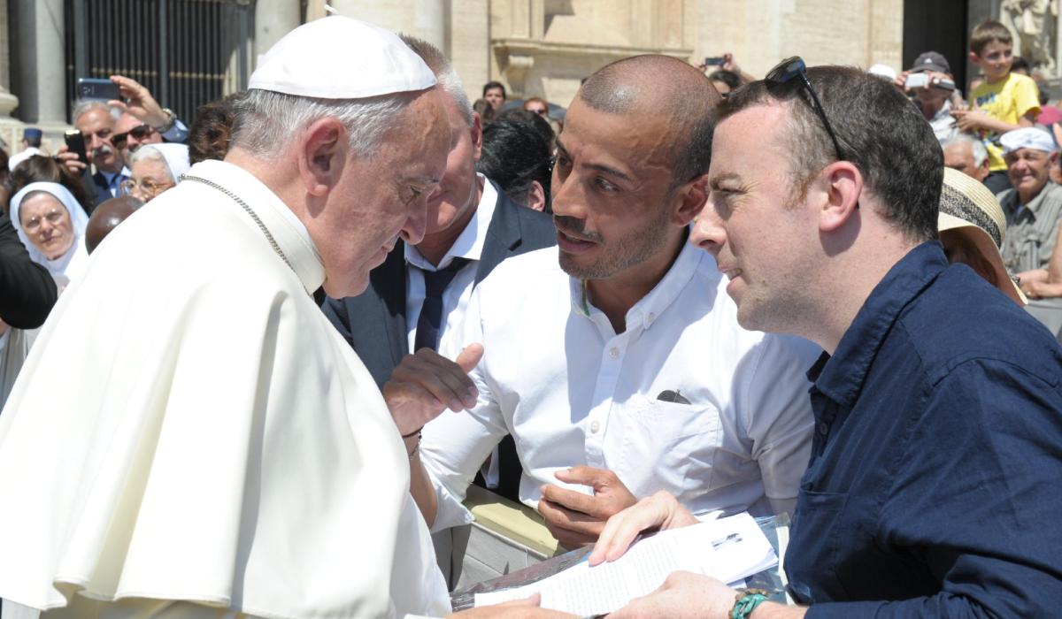 Longford's Vincent Doyle and interpreter John Valencia Rojas meeting Pope Francis in Rome in 2014.