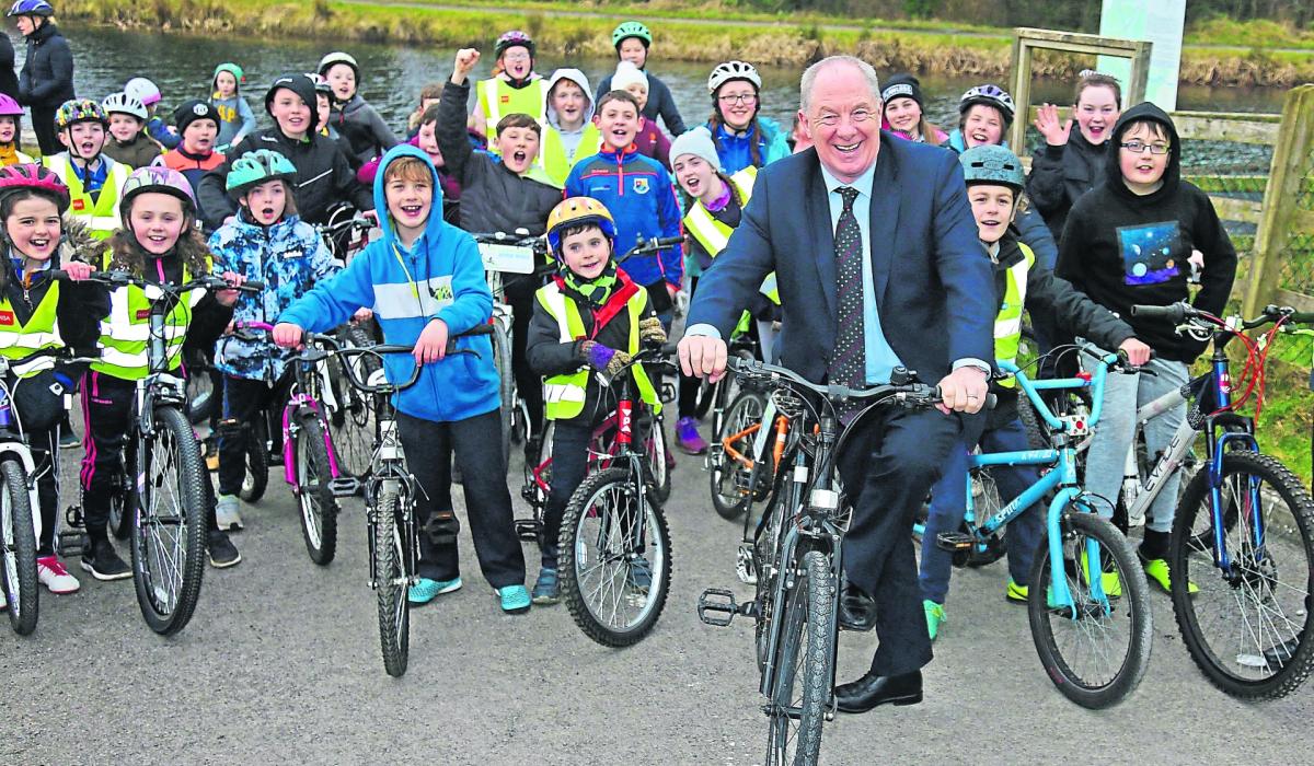 Rural Affairs Minister Michael Ring joins children at the opening of the Royal Canal Greenway last Thursday