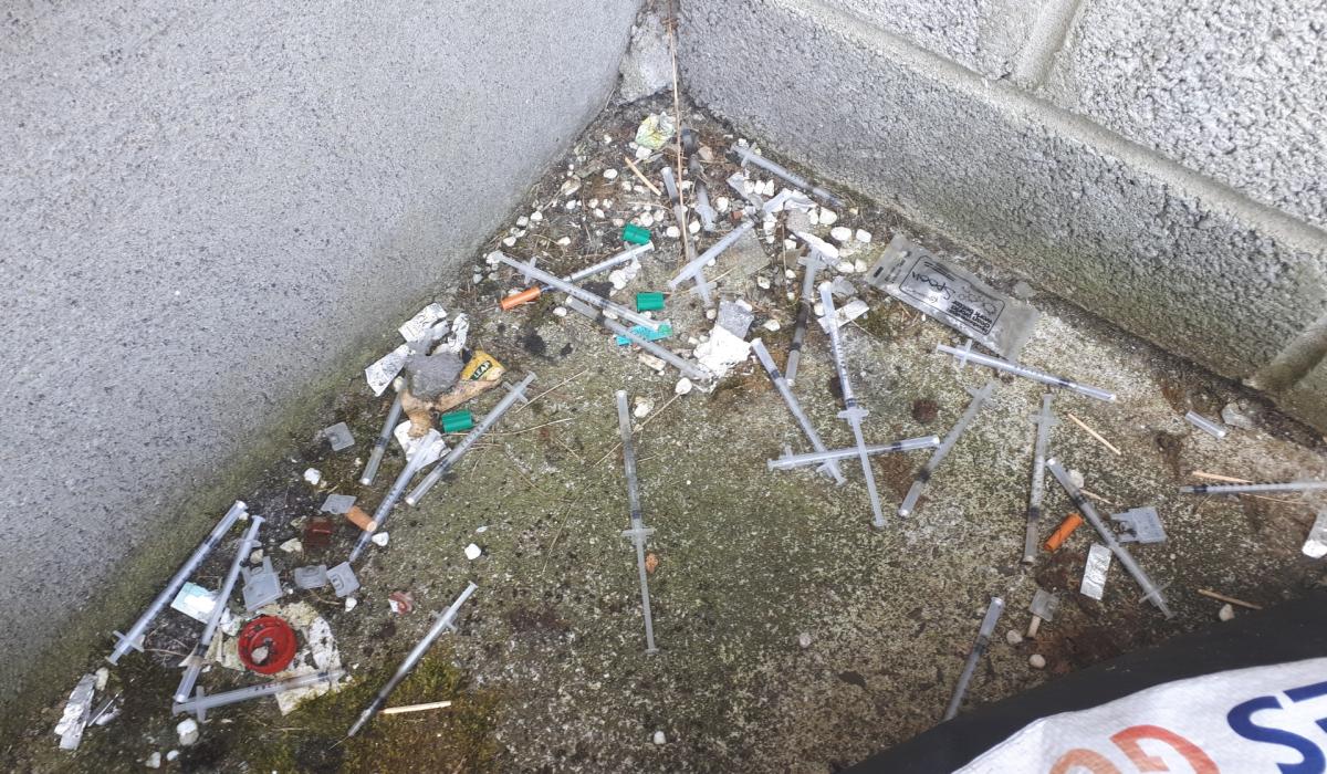Evidence of used syringes found discarded at the back of a vacant house in Longford town today