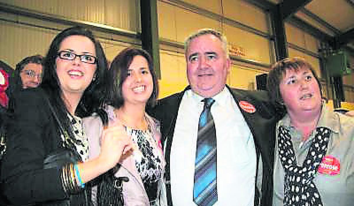 Labour TD Willie Penrose pictured with his wife Anne and daughters Aisling and Niamh at a general election count in St Dominic's Community Centre, Kenagh. Photo: Michelle Ghee