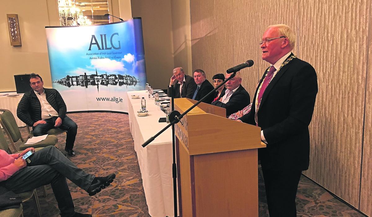 Cllr Luie McEntire addresses members of the audience at Mullingar's Park Hotel last week upon his election as Association of Irish Local Government (AILG) President.