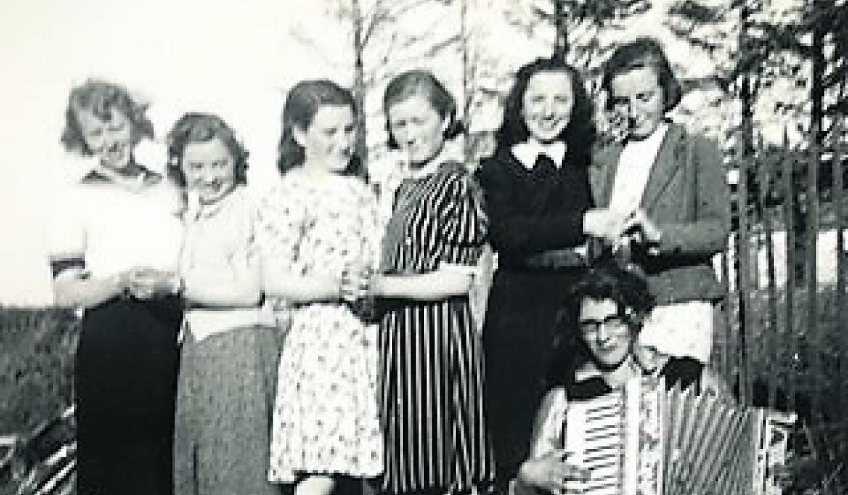 As a young lady, the late Mary Ellen Fletcher loved to play camogie and here she is pictured with Maureen Cox, Peggy Kerrigan and other friends from the area