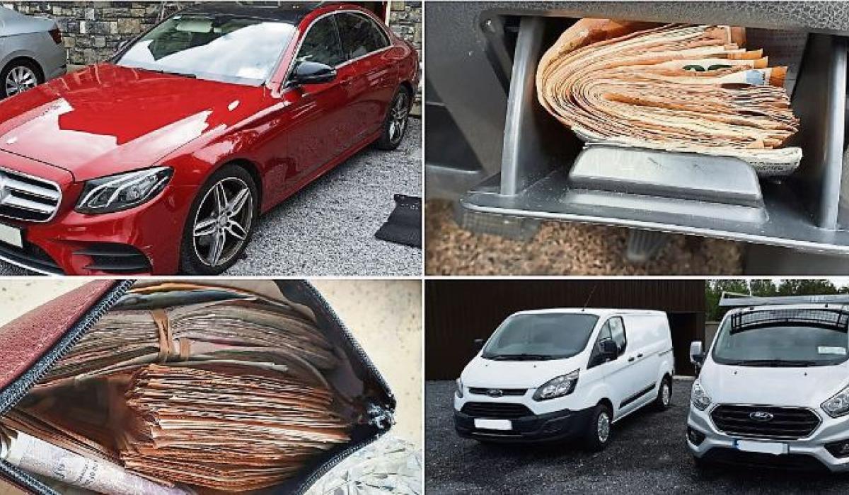 A total of 11 vehicles, including a Mercedes, Skoda Kodiaq, Isuzu DMAX, Ford Ranger, Toyota Landruiser and assorted light commercial vehicles were seized together with three power washers, designer watches, handbags, footwear and €124,000 in cash.