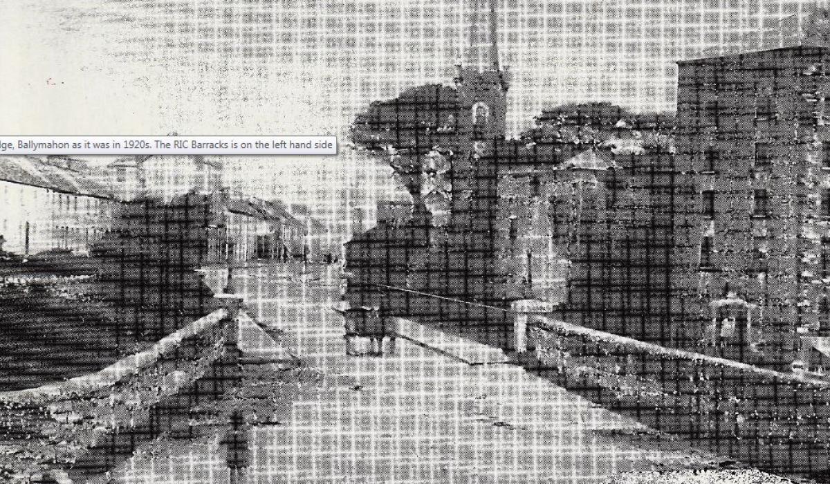 Inny Bridge, Ballymahon as it was in 1920s. The RIC Barracks is on the left hand side