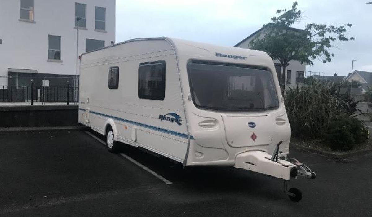 The 06 registered caravan is distinctly marked with words Bailey Ranger emblazoned on its side.