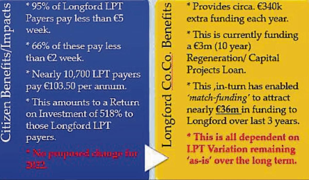 Those measures have allowed the county to bolster its own reserves by varying LPT rates through its well documented 'Longford Model' in a move which has seen the local authority kickstart a number of large scale regeneration projects.
