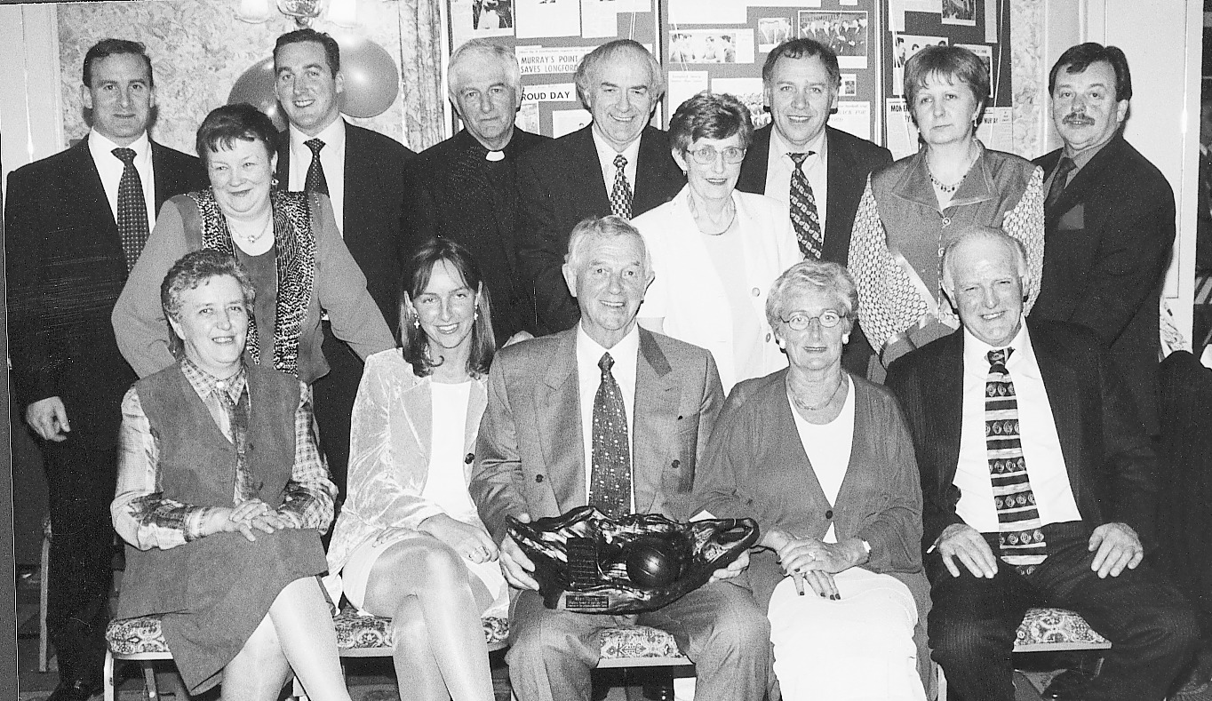 CAPTION: 1999 Longford Association in Dublin honours Sean Murray: The Murray Clan celebrate Sean's award at the Longford Association in Dublin – back: Sean jnr, Anne and Ed Murray, Fr Jimmy Murray, Gerry Quinn, Bea O'Connell, Danny Donohoe, Frances Casey and Bill O'Connell. Front: Brigid Loddick, Cathy Murray, Sean and Pat Murray and Eamon Murray
