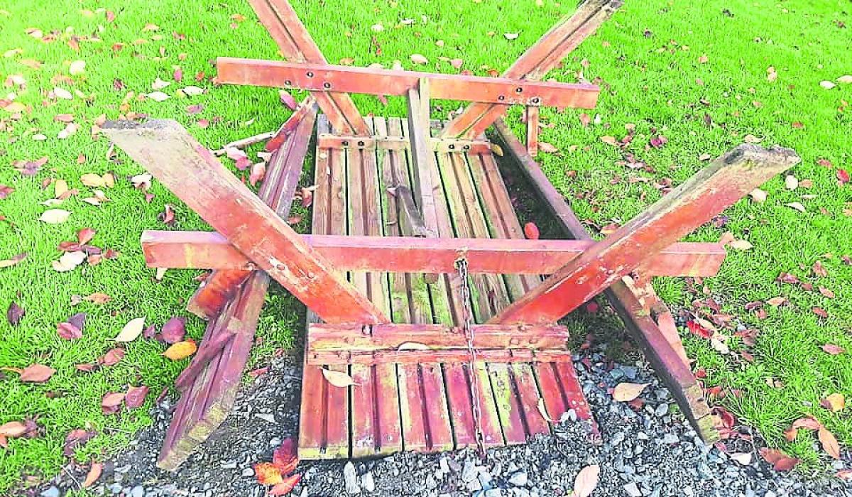 Some of the damage which was caused to a bench in Ballinalee at the weekend