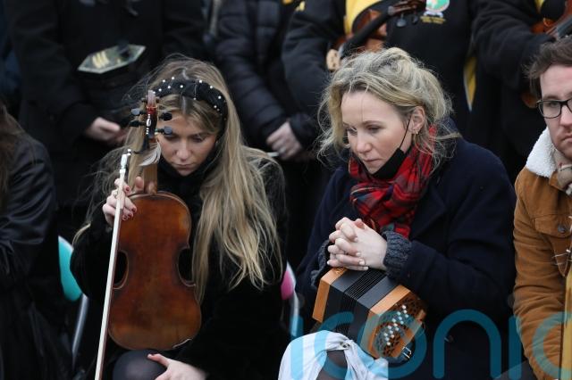 Schoolchildren provided a guard of honour outside the church prior to the funeral. A number of children also held fiddles and tin whistles.