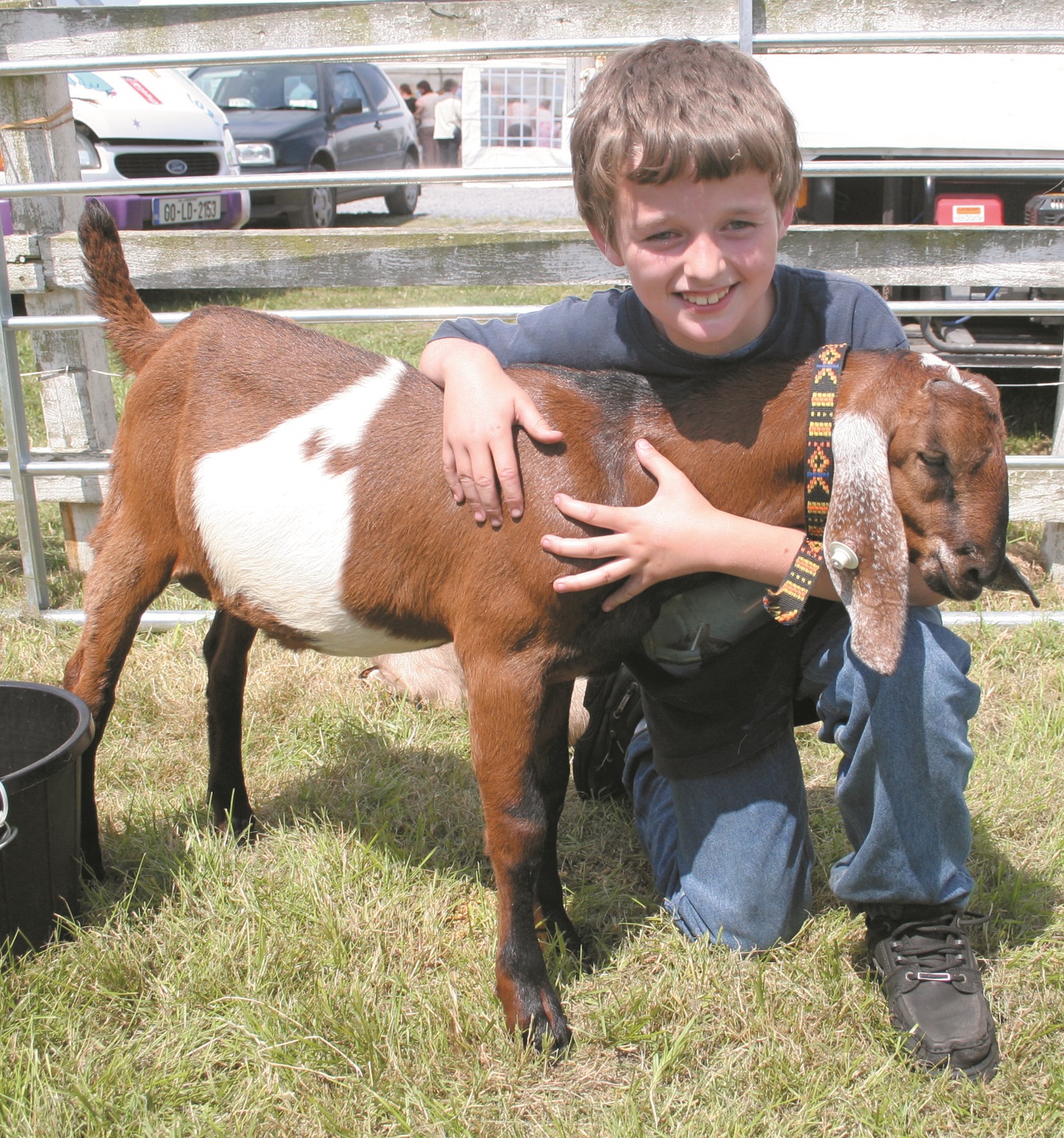 Caption: James Sullivan from Ballinalee with Floppy (Angle Nubian Goat)