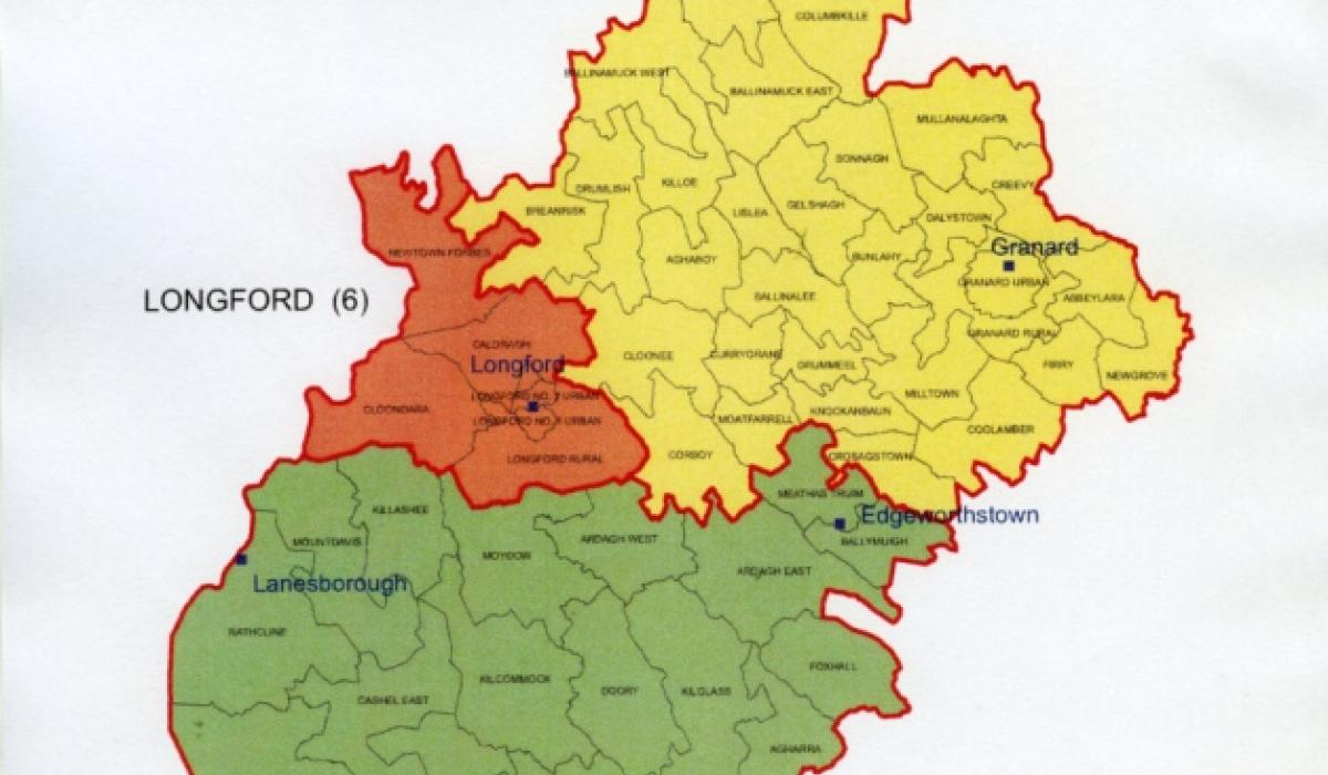 Following the publication of last year’s Local Electoral Area Boundary Report, Longford has been carved up into three electoral areas – Ballymahon, Granard and Longford representing 13,284; 12, 539 and 13,177 people respectively, and each will elect six representatives.