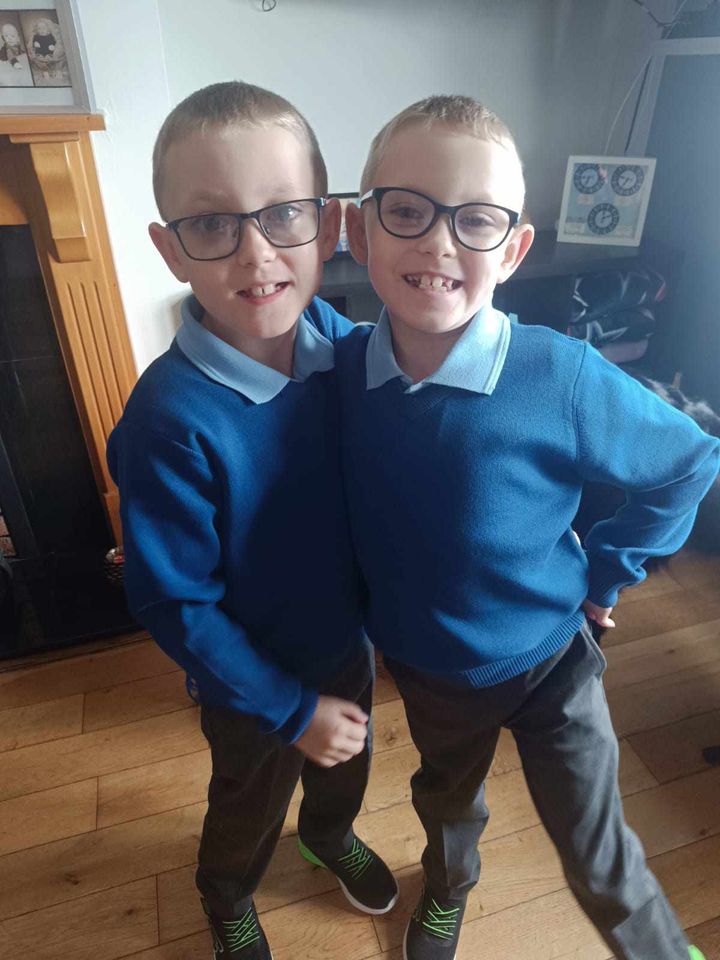 Caption: Cody and Cory Zalys, twin brothers, starting 1st class this year in St Mary's National School, Edgeworthstown