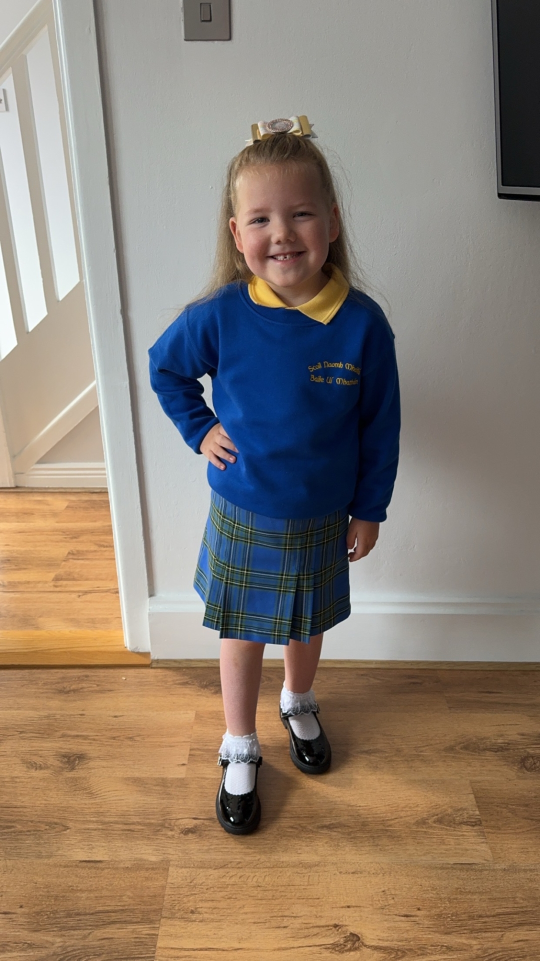 Caption: Scarlett Murray, aged 5, from Kenagh started Junior Infants in St Matthew's National School, Ballymahon on Tuesday, August 27