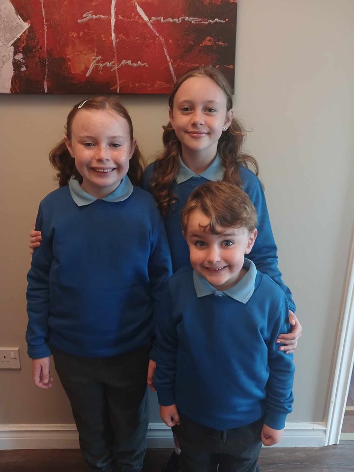 Caption: James Gilchriest, aged 5, who started Junior Infants in St Mary's National School, Edgeworthstown on Thursday, August 29. James is pictured with his sisters Sophie and Jessica