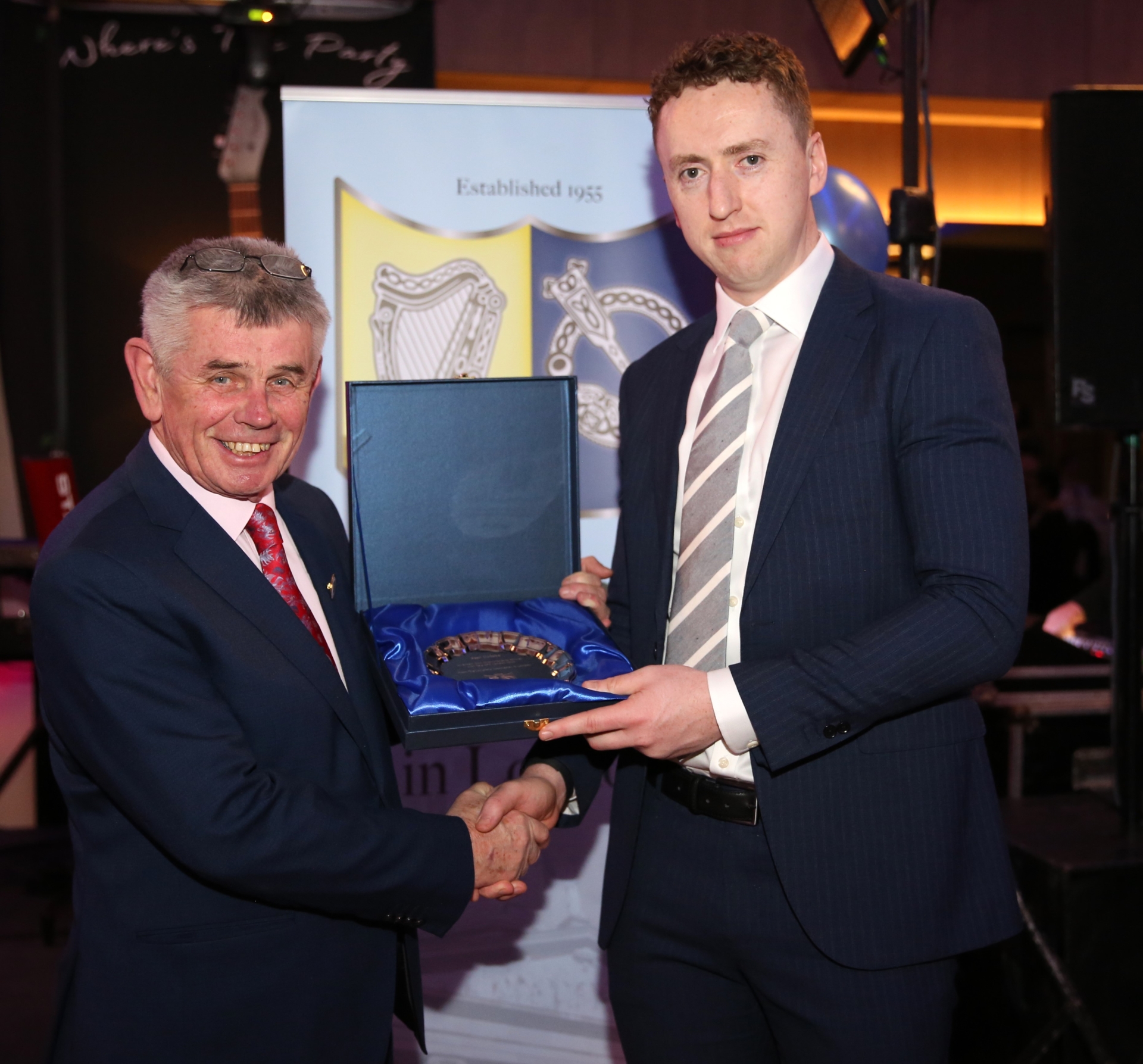 Caption: Cllr Martin Skelly making a presentation to Sean McCabe from Tara GFC London who won The All Britain Club Championship
