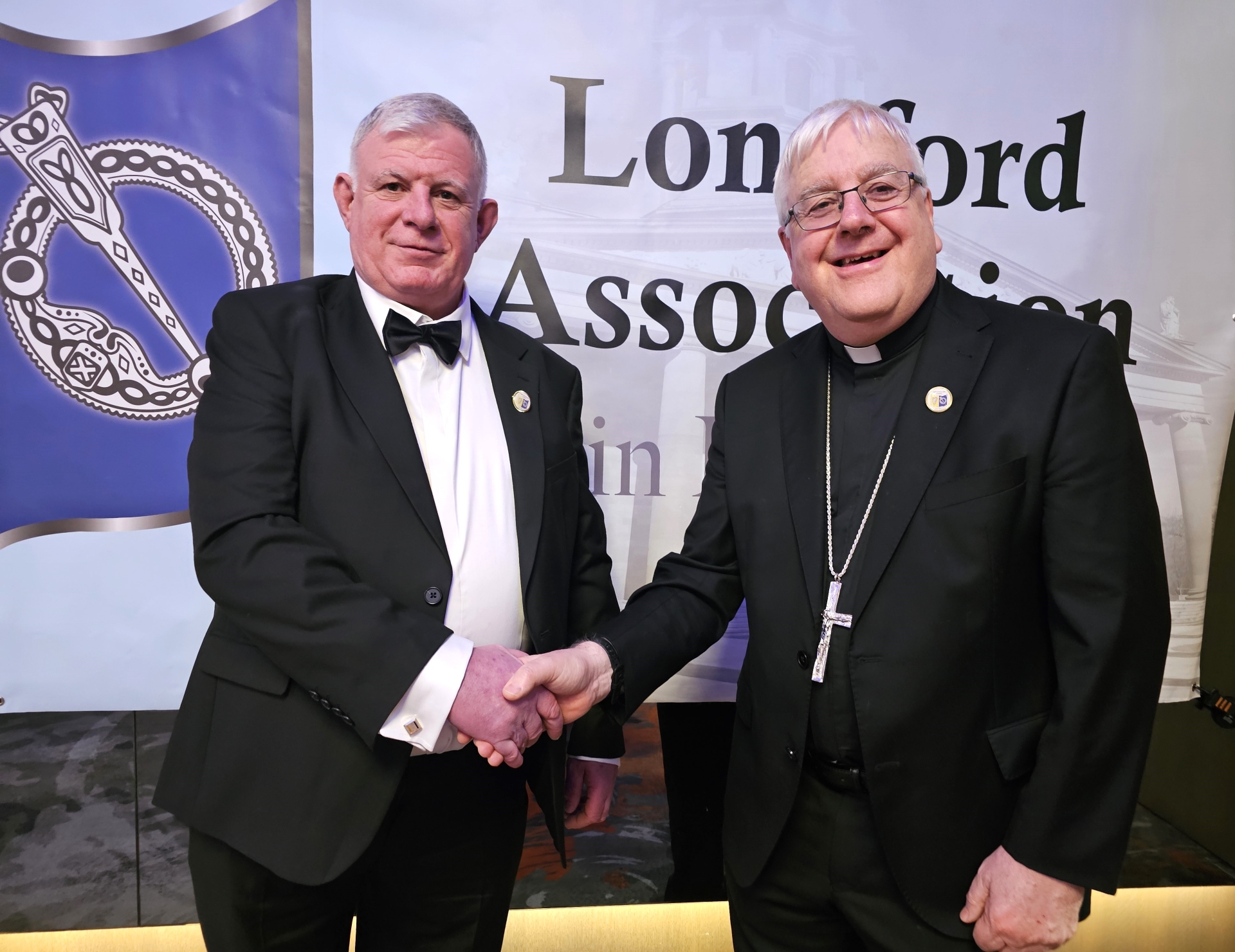 Caption: Longford Association Chairperson Dan Keogh welcoming the Bishop of Ardagh and Clonmacnois Paul Connell to the 69th Longford Association in London dinner dance at The Clayton Crown Hotel on Saturday, February 1 Picture: Lucia Butler