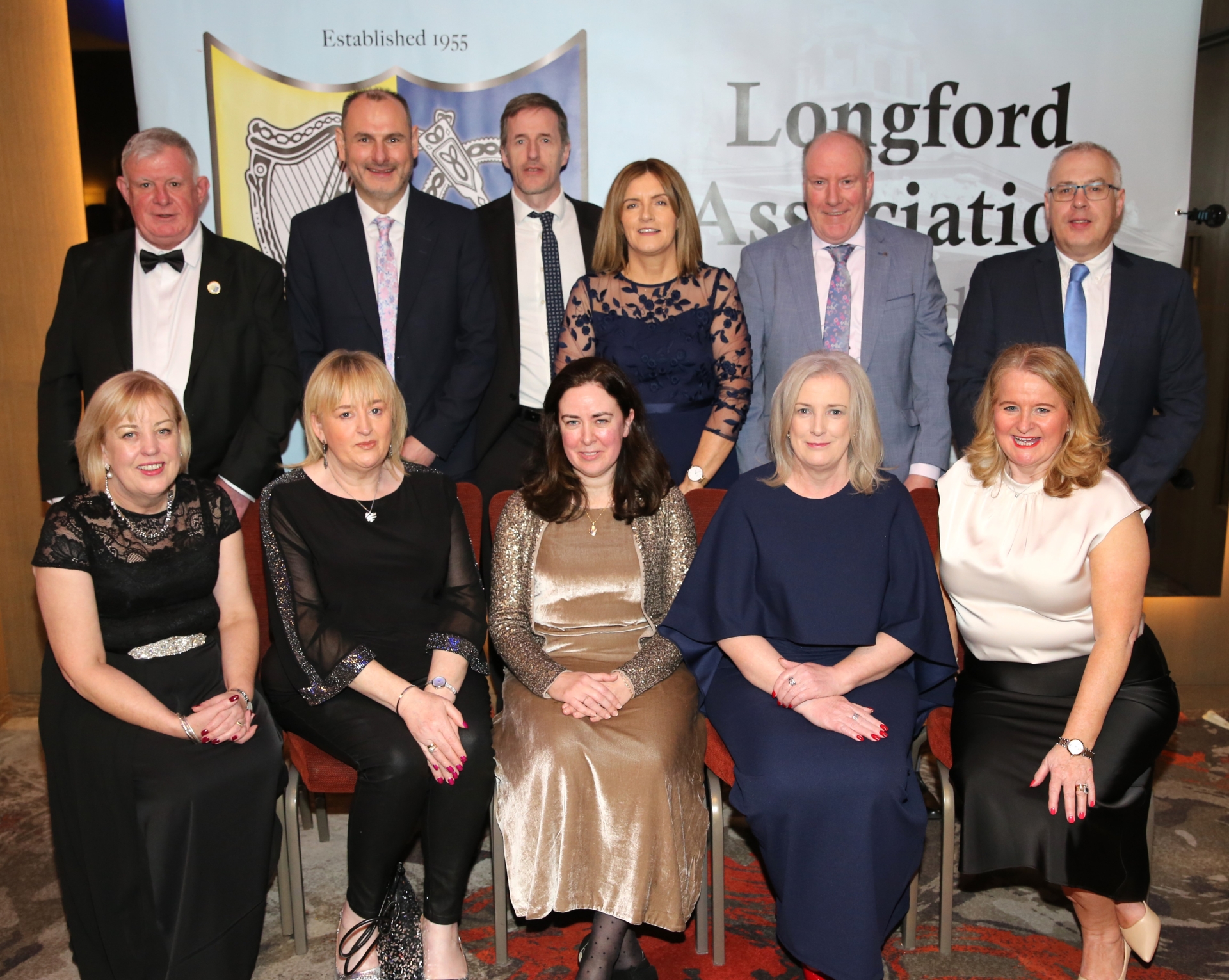 Caption: Dan and Helen Keogh, Peter and Adrianne Egan, Martin and Siobhan O'Donoghue, Hillary Fitzpatrick, Paddy Keogh and Christina Barry, Patrick and Camillus Mullaney at the 69th Longford Association in London dinner dance at The Clayton Crown Hotel on Saturday, February 1 Picture: Lucia Butler