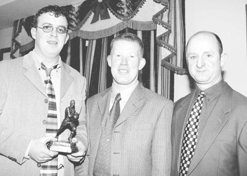 Caption: Pictured at the Abbeylara GAA Dinner Dance were John Joe Reilly, Declan Rowley, team trainer and Kevin Sullivan, Club Chairman