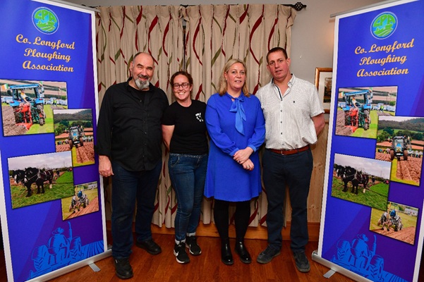 Caption: County Longford Ploughing Championships 2025 launch night hosts Pat Byrne and Nora Concannon with Jackie White, Raymond White Auctioneering and Barry White (Longford Ploughing Association Chairperson)