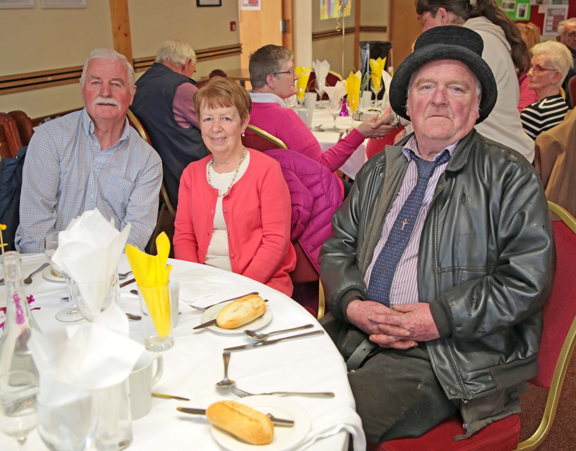 Caption: Eugene and Hannah Reilly and James Boylan in Abbeylara Parish Centre for the Senior Citizens’ Easter Party