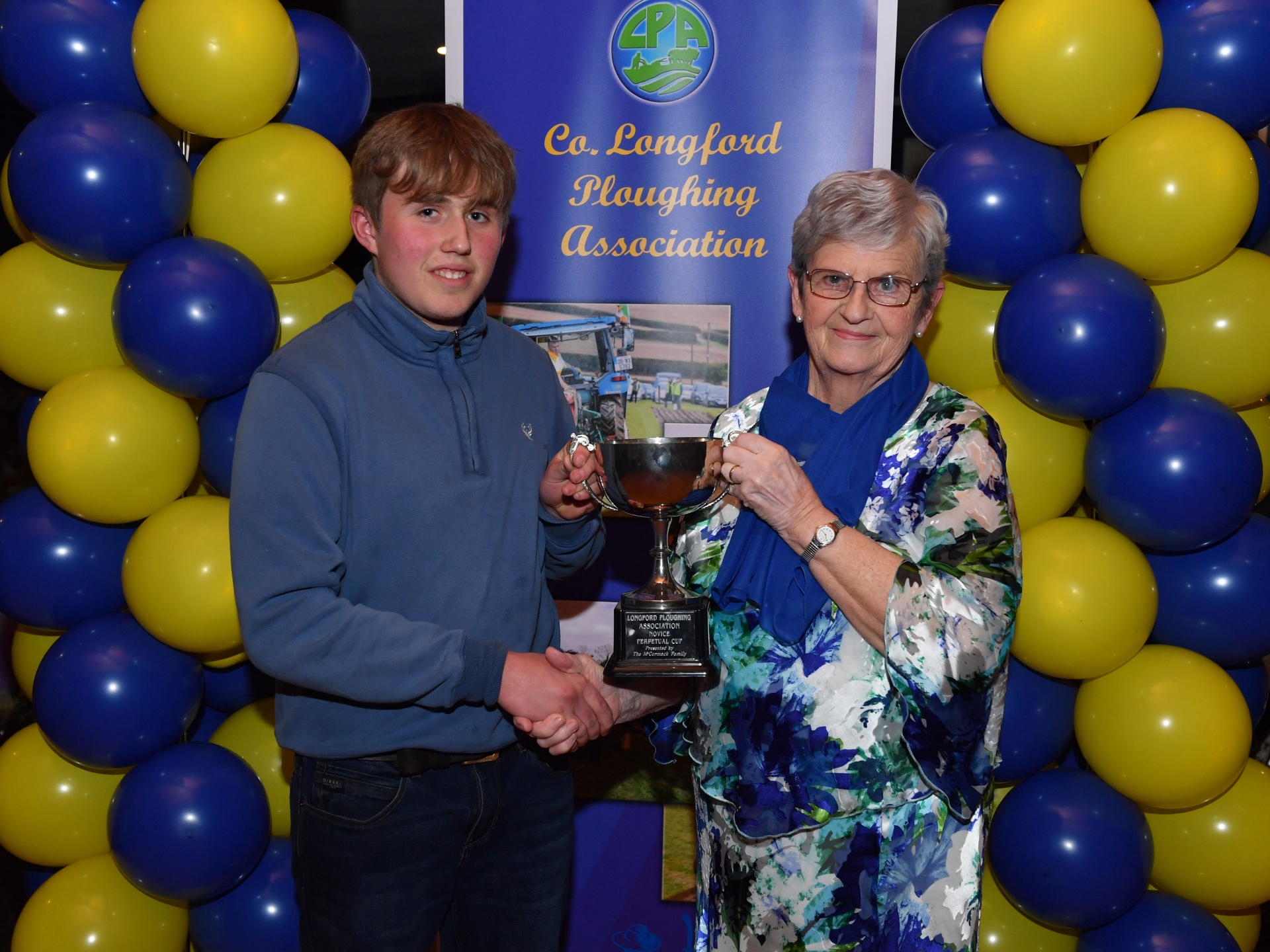 Caption: Bernard Egan from Kenagh, Longford novice ploughing champion 2025 receiving his award from Chrissie McCormack