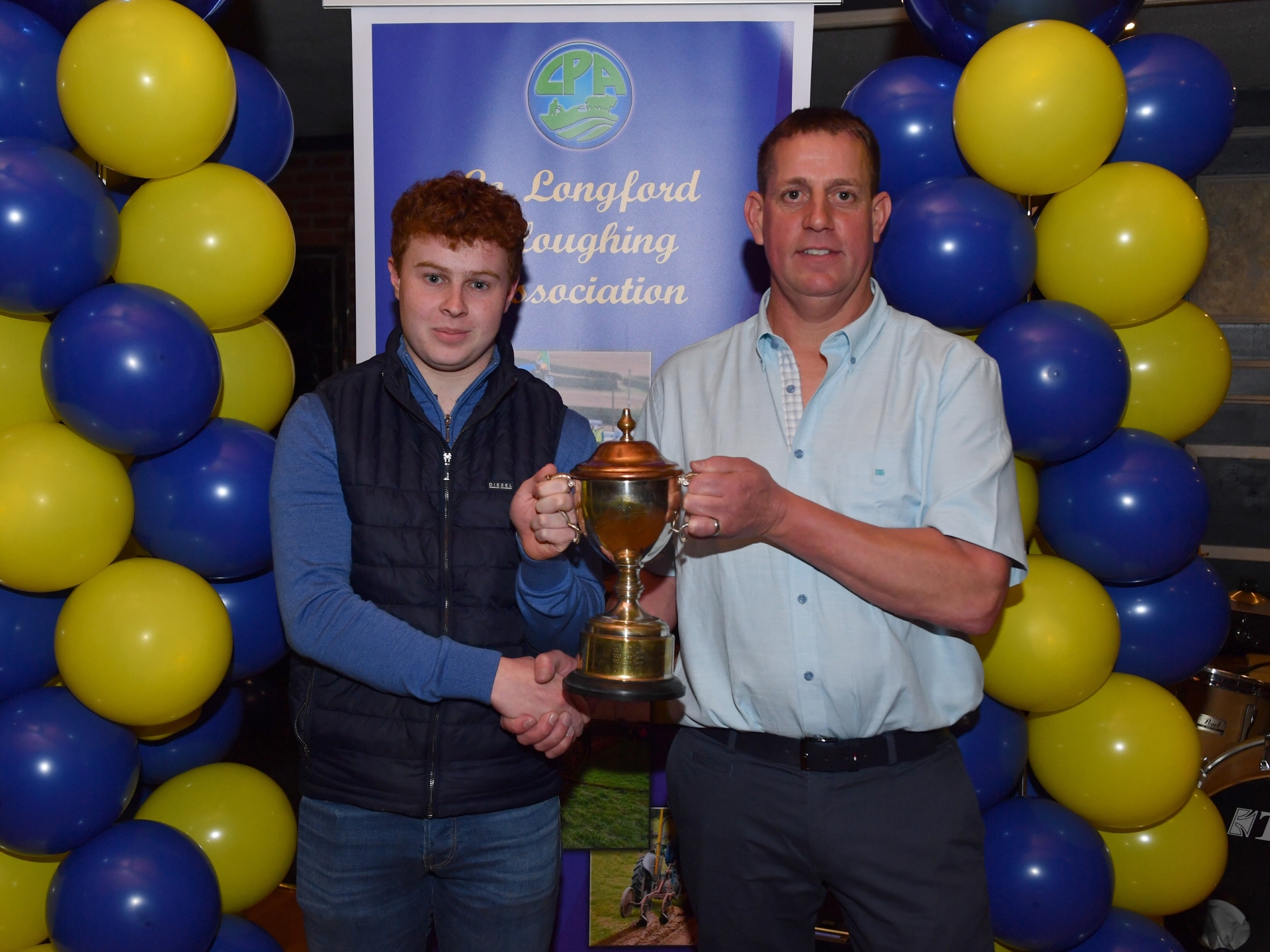 Caption: Stephen Haughey from Edgeworthstown receiving the cup for first in the U21 class from chairperson Barry White