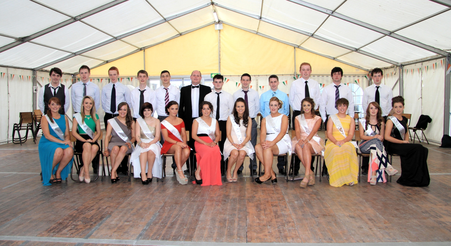 Caption: The 'Lady of the Motte' contestants with their escorts and MC Turlough McGovern.