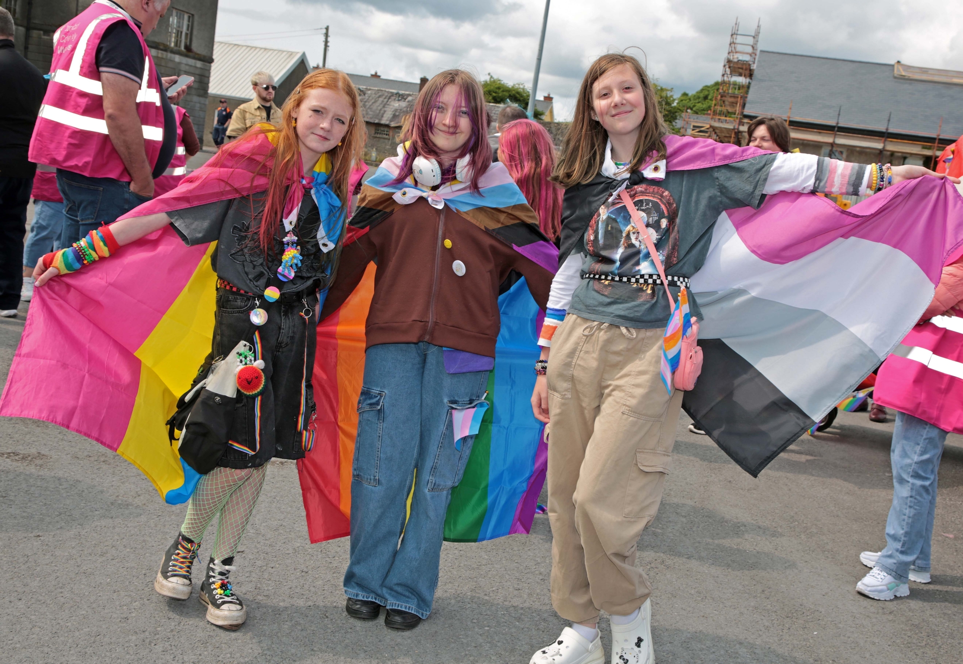 Caption: Juliette McKenna, Leahnada Dempsey and Noemi Duszynska all set to take part in Longford's second ever Pride parade Picture: Shelley Corcoran
