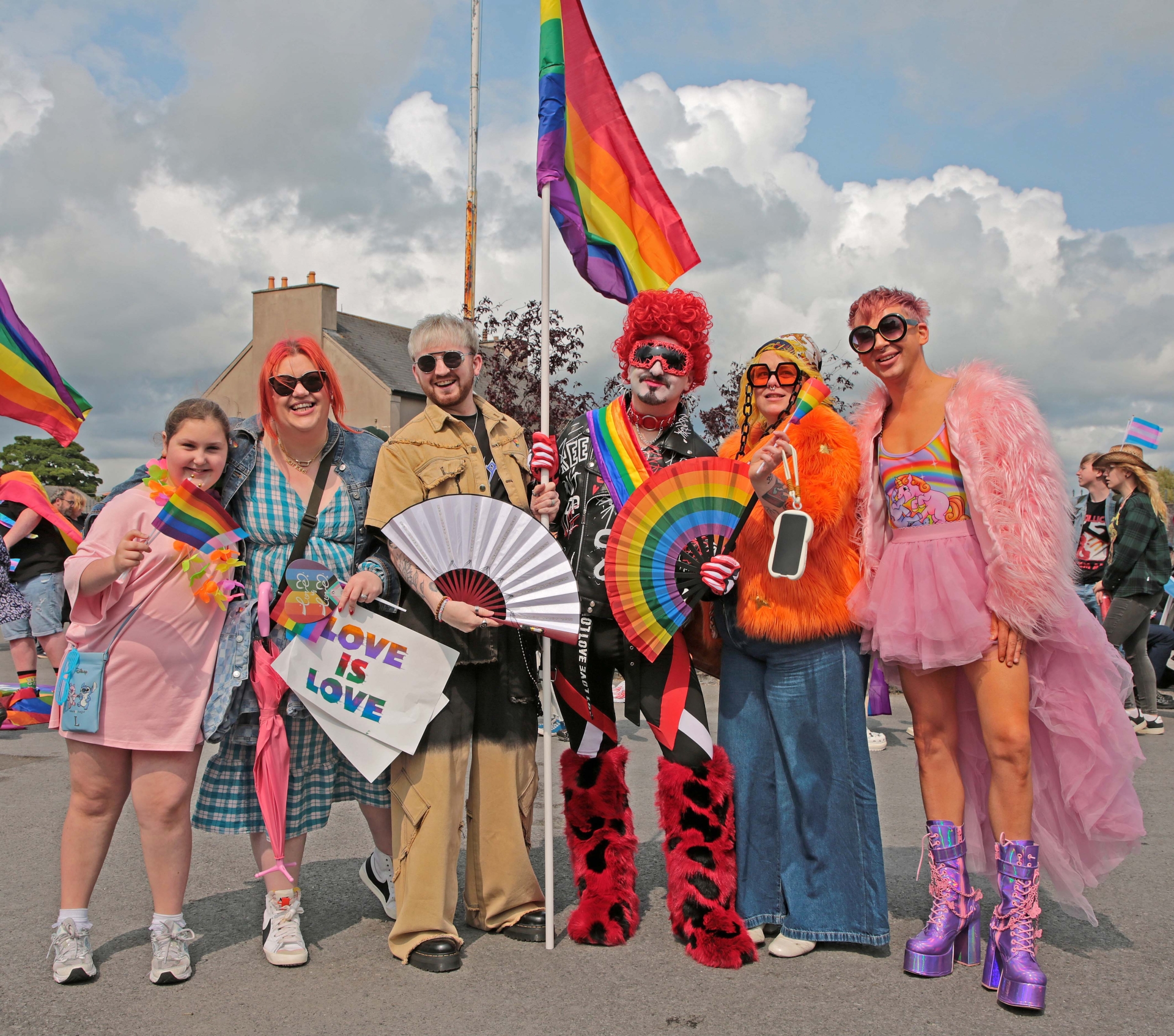 Caption: Bursting with pride: Lilly and Sarah Jane Leddy, Craig Murray, Longford Pride Parade Grand Marshal Colin Foy, Emma McCormack and Jamie Bolger in Longford town on Saturday Picture: Shelley Corcoran