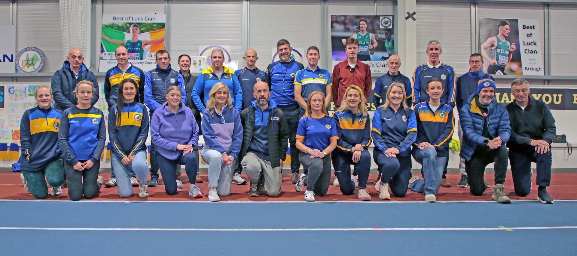 Caption: It was an immensely proud occasion for the executive and members of Longford Athletics Club as they hosted and organised a homecoming reception last Friday evening to recognise the incredible performances of Cian McPhillips as he set a new Irish 800m record en-route to qualifying for the World Championship 800m Final where he finished fourth. Club members are pictured above with Cian. Picture: Shelley Corcoran