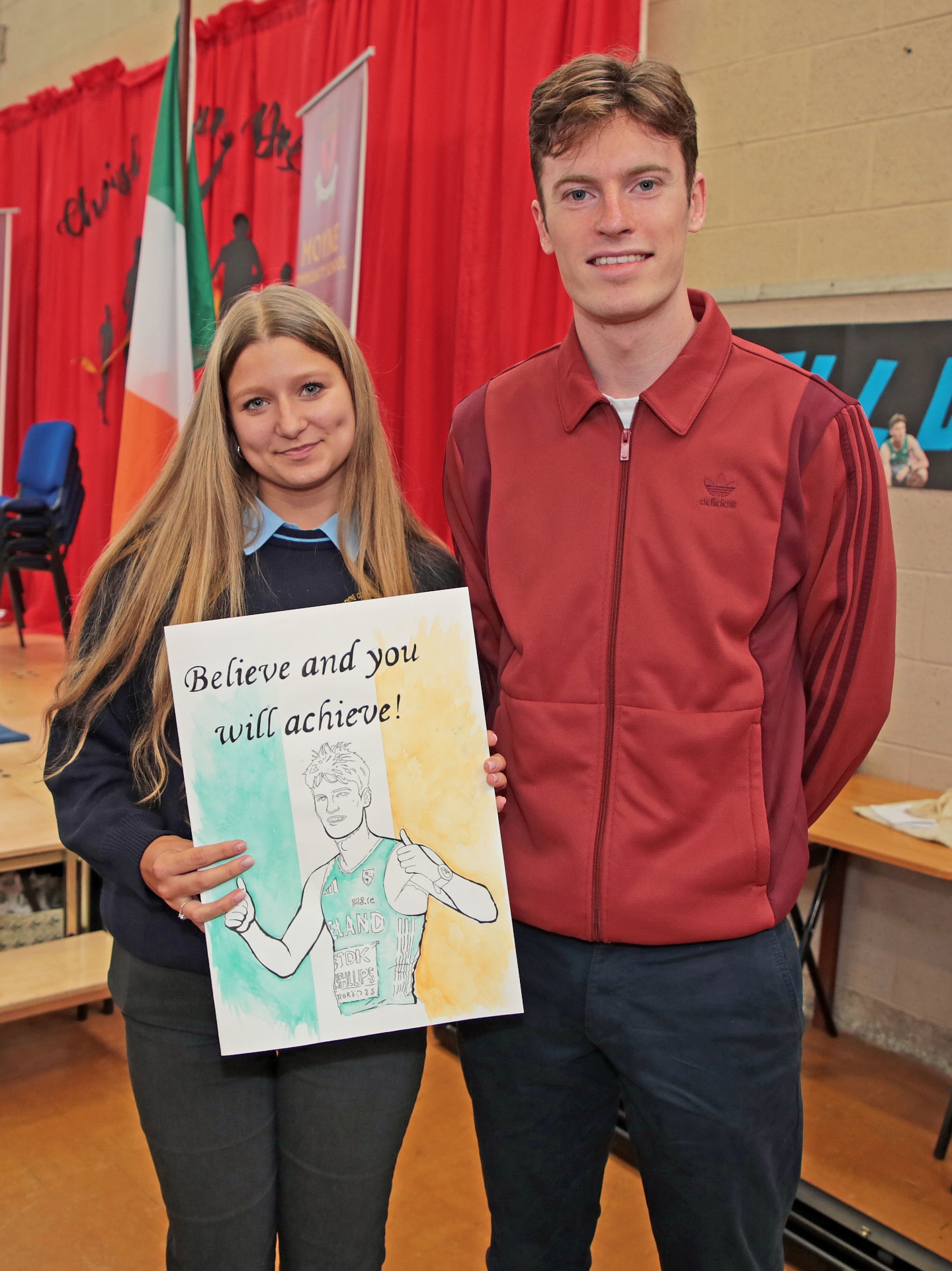 Caption: Oliwia Czaja with her 'Believe and you will achieve!' art work inspired by former Moyne CS student Cian McPhillips with his performances in the Irish singlet in Tokyo recently Picture: Shelley Corcoran