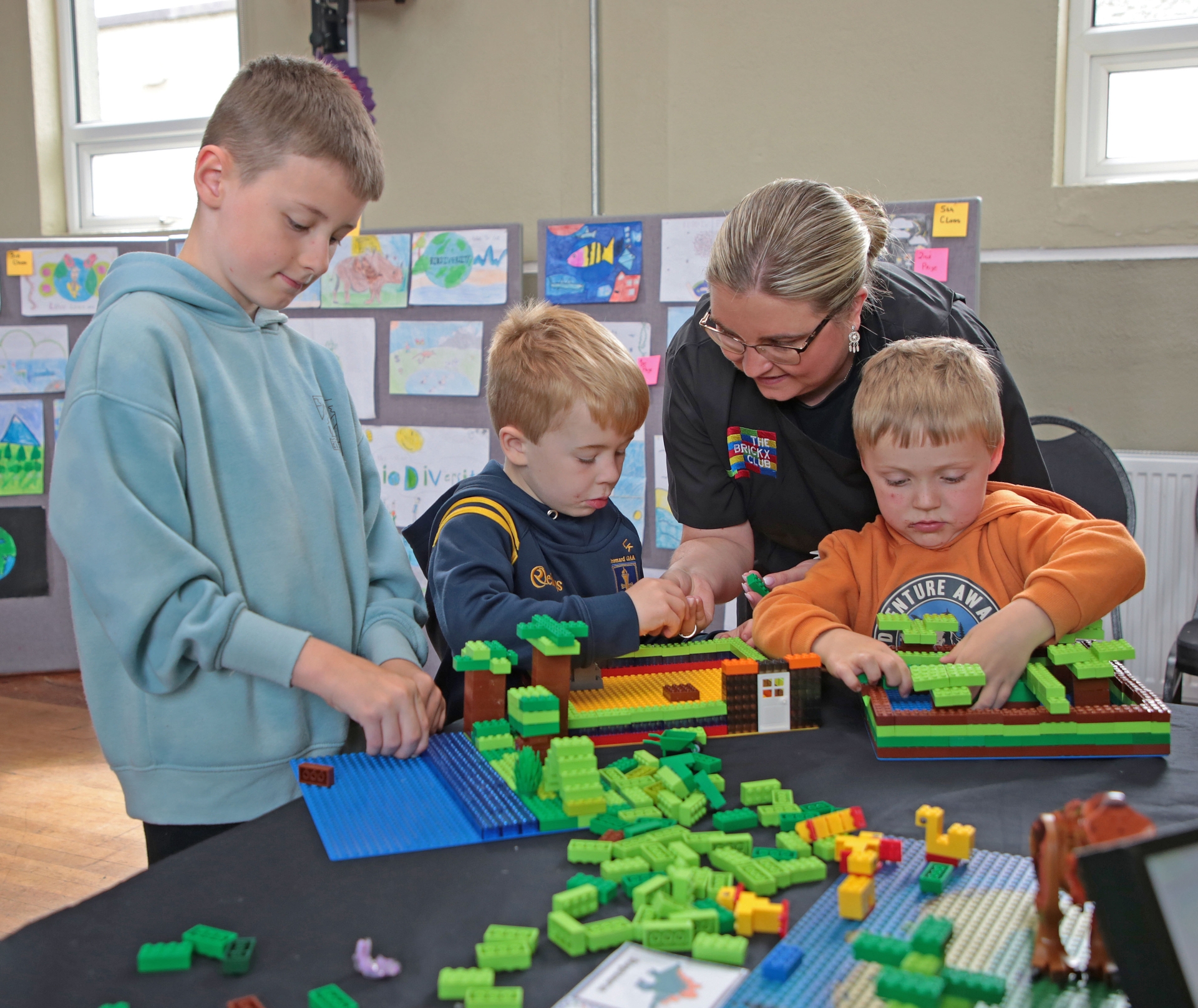 Caption: Moyne Latin School, Midlands Brickx Club: Nicole Garrigan with Logan Kiernan, Oisin Ginty and Tyler McKenna