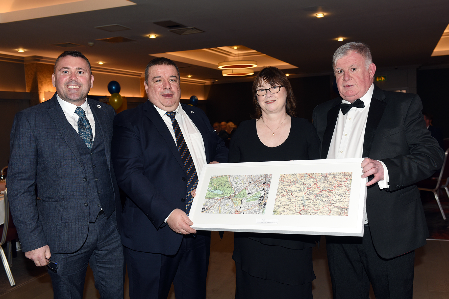CAPTION: A presentation was made by Longford Association in London Chairperson Dan Keogh, right, to former Longford Association Chairperson Aiden Ganley and his wife Mary who recently moved home to Longford. Also pictured is Vice Chairperson Ciaran McGann Picture: Malcolm McNally Photography
