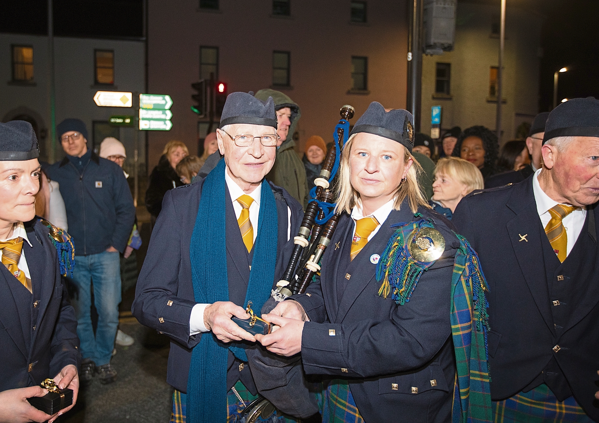 Caption: Pipe Major Benny McGuinness and daughter Siobháin McGuinness
