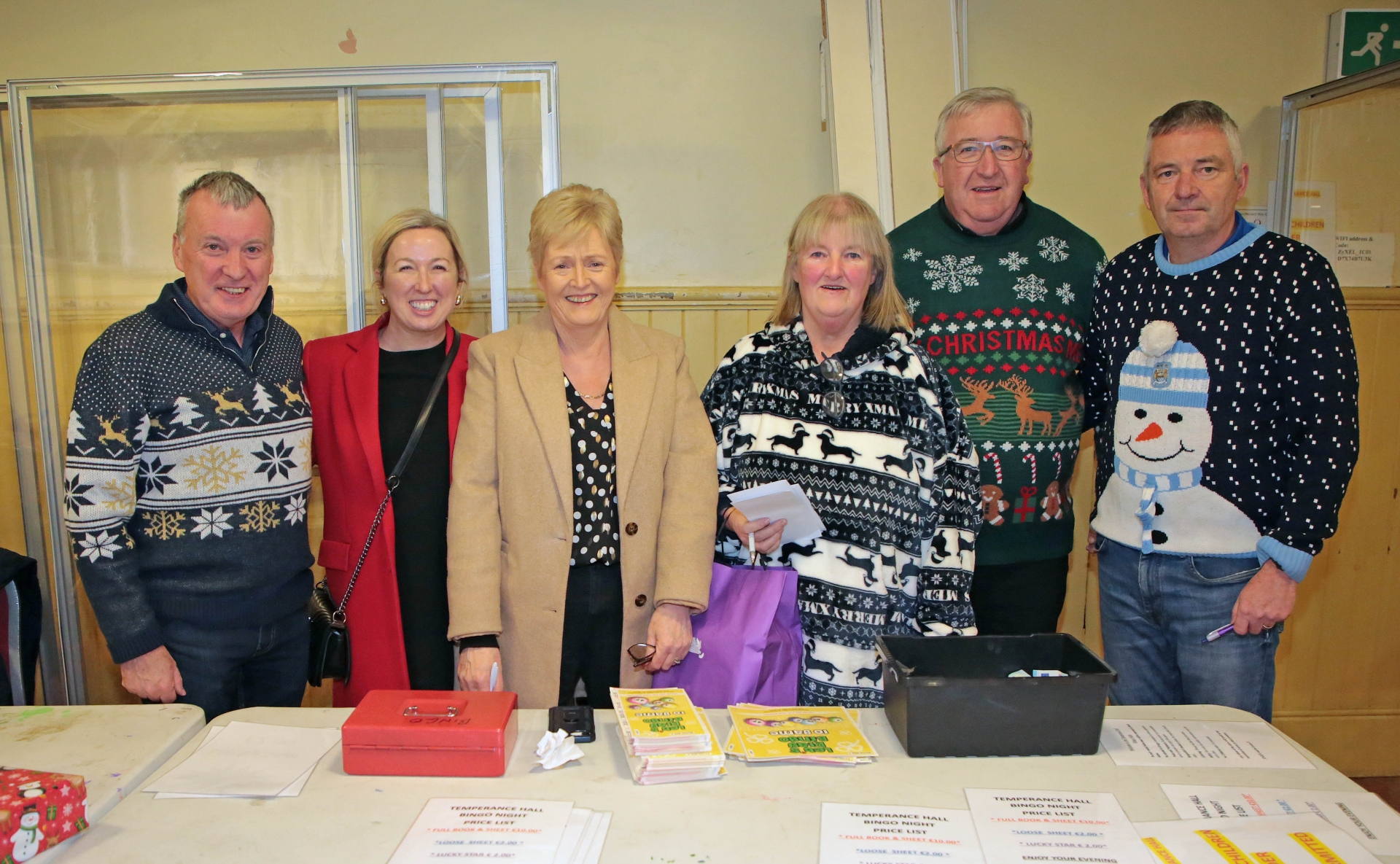Caption: Jimmy O'Connor, Georgina Hourican, Carol Farrell, Ruth McGarry, Fr James McKiernan and Michael Nevin at the Christmas bingo in the Temperance Hall, Longford town (proudly supported by Longford Night Time Economy) on Tuesday, December 16 Picture: Shelley Corcoran