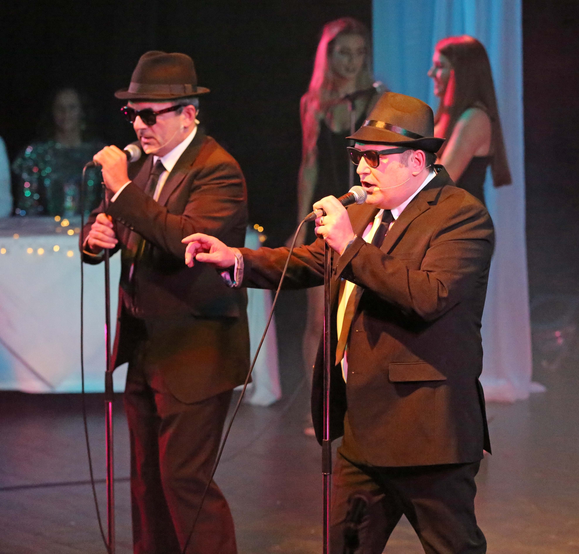 Caption: 'Blues Brothers' Des Locke & Fr Michael McGrath performing 'Everybody needs somebody to love'