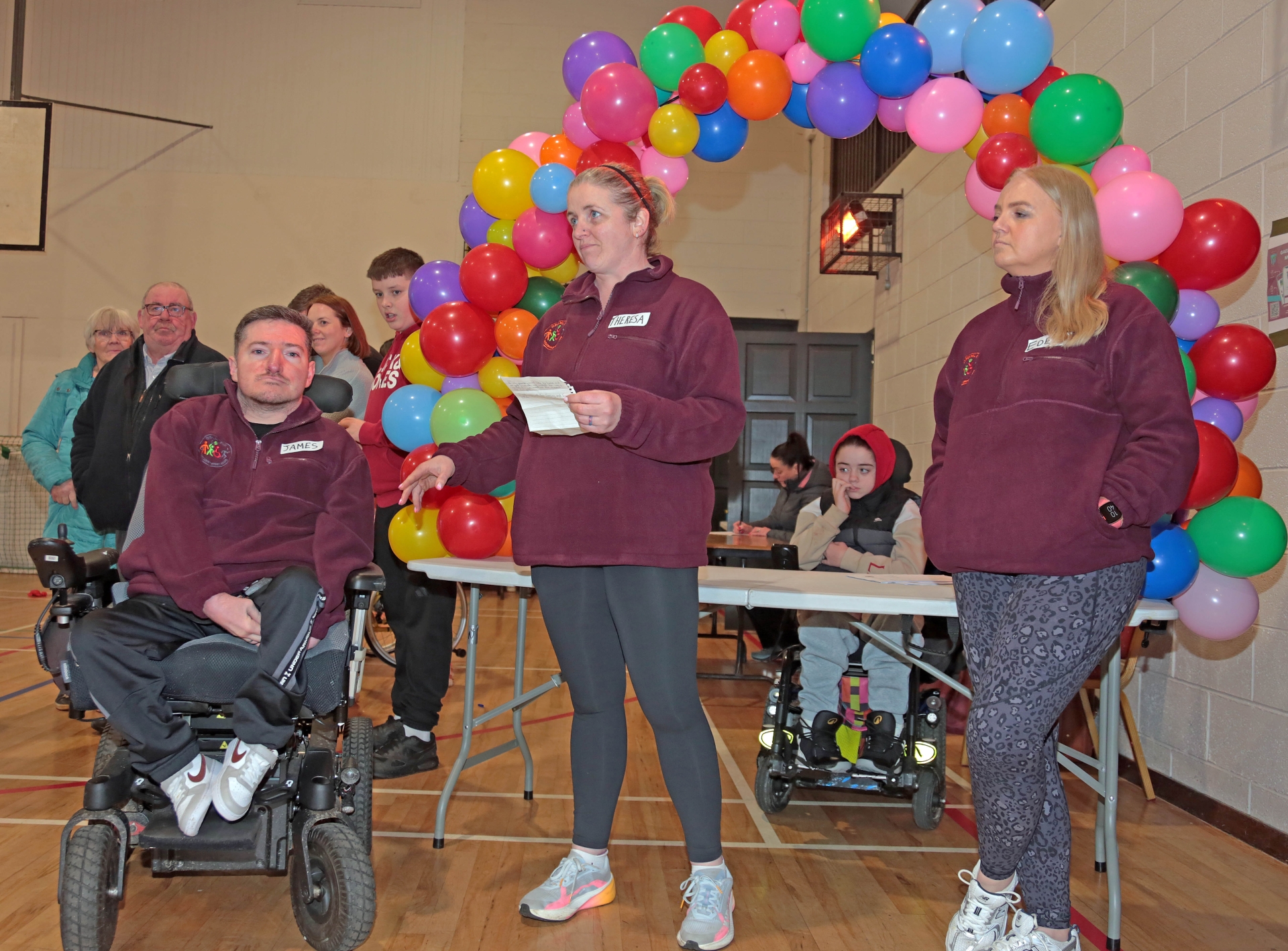 Caption: Chairperson of Drumlish Inclusive Sports Club Theresa Gearty Kane opens the club with a short address on Saturday, January 17. Pictured alongside Theresa are James Cawley and Edel Murray. Picture: Shelley Corcoran