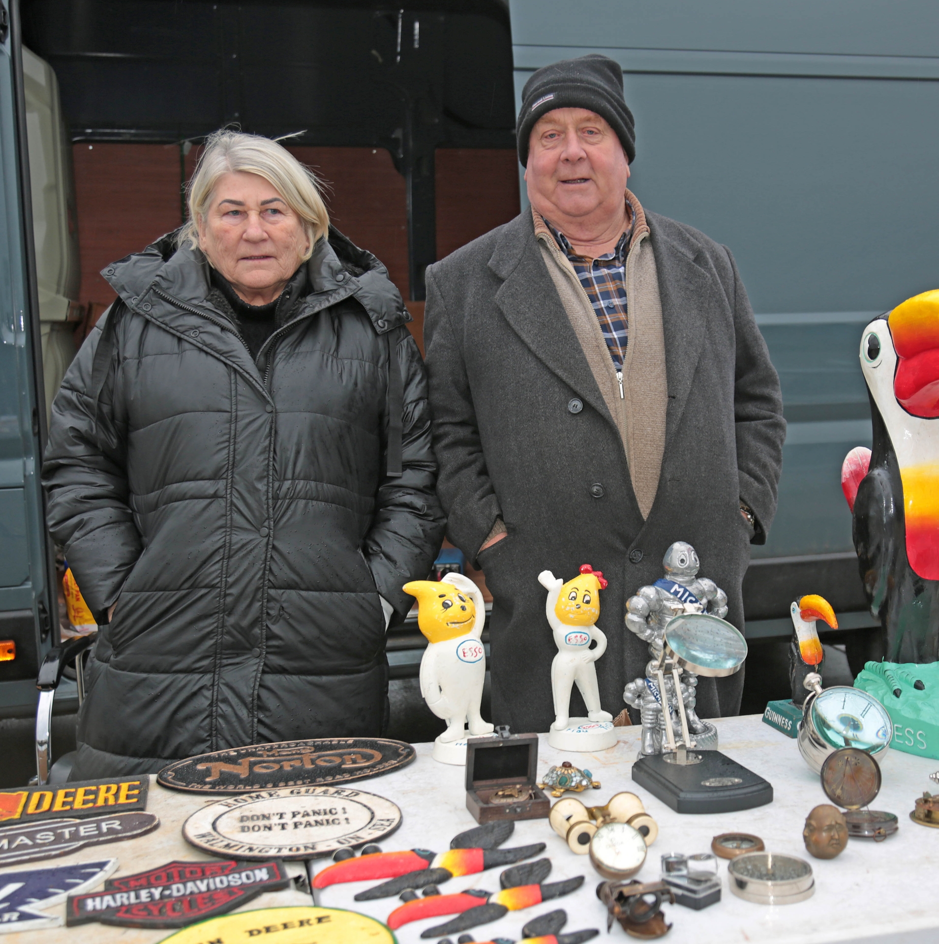 Caption: Margaret and Peter Kelly at the Lakeland Vintage Club autojumble, Vintage machinery sale and collectors fair on Sunday, January 11