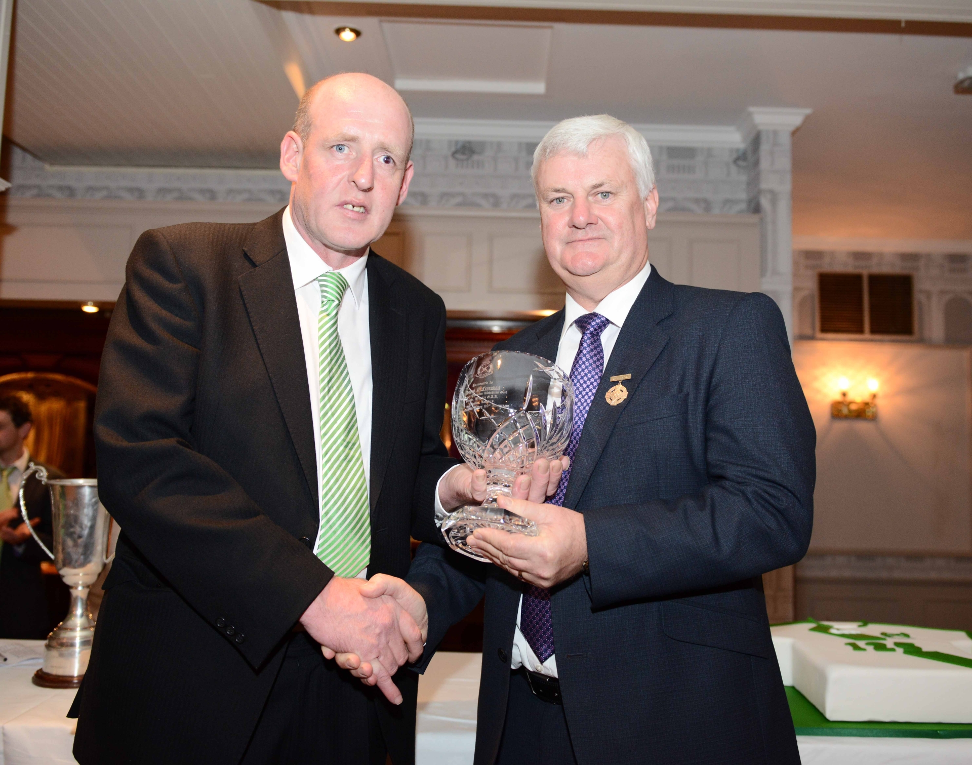 Caption: Owen making a presentation to GAA President Aogán Ó Fearghail when he was guest of honour at the St Brigid’s Killashee dinner dance