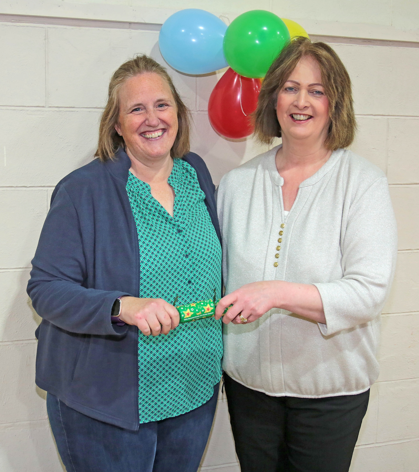 Caption: Sharon Thompson and Claire McDermott pull a cracker during the Ardagh Moydow Glen / Ballycloghan and Legan Active Age dinner Picture: Shelley Corcoran