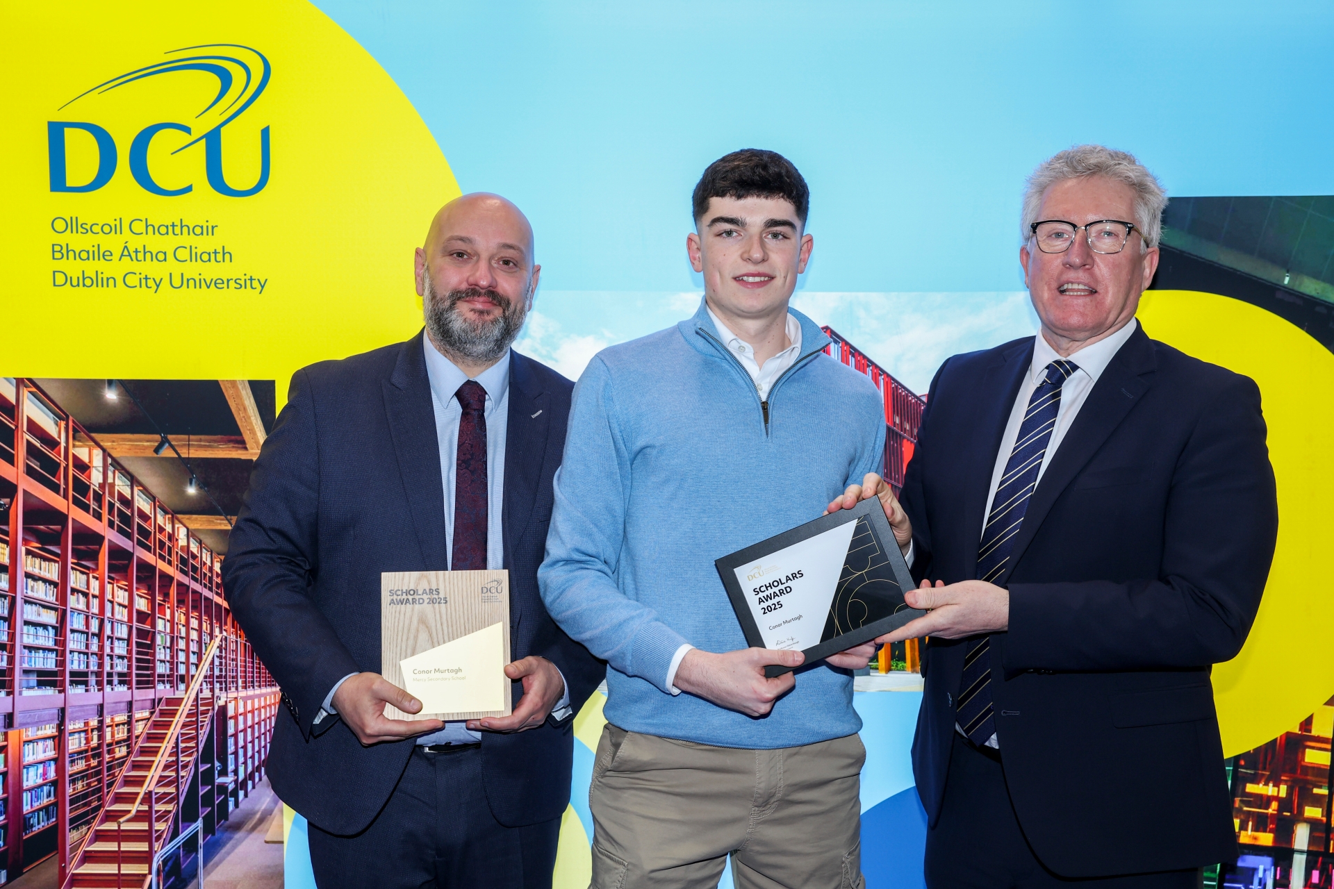 Caption: Conor Murtagh with Pierre Boudin, Deputy Principal of Mercy Secondary School, Ballymahon and DCU President, Professor Dáire Keogh. Conor is studying for a Bachelor of Science in Actuarial Mathematics at Dublin City University. Pic: Kyran O’Brien/DCU