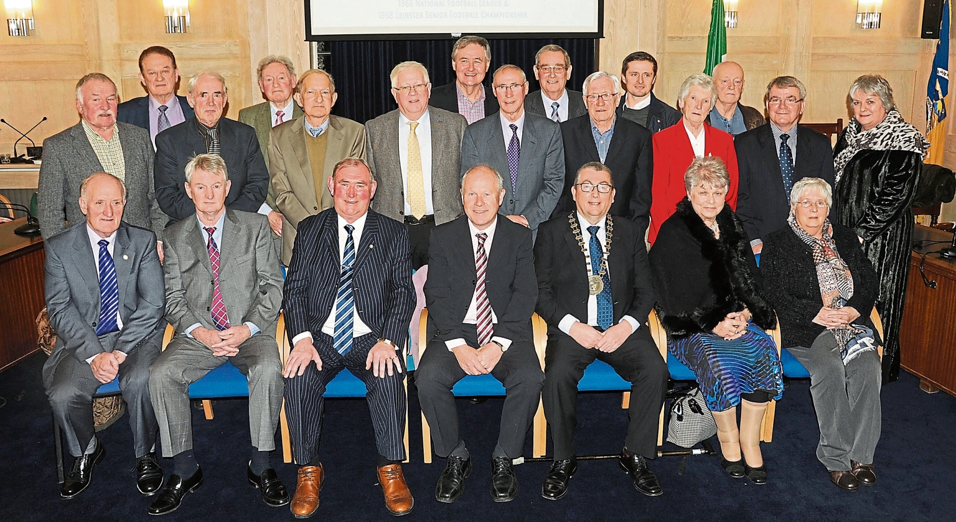 Caption: An Cathaoirleach, Councillor Mick Cahill and the Members of Longford County Council held a Civic Reception on Friday, November 18, 2016 in the Council Chamber, Aras an Chontae in honour of the Longford County Football Team of 1966-1968, who won the 1966 National Football League and the 1968 Leinster Senior Football Championship.(front row) Terry McGovern, Jimmy Hanniffy, Brendan Gilmore, Paddy Mahon, Chief Executive, Longford County Council, Cathaoirleach Cllr. Mick Cahill, Marian Donlon, Carmel Kelly, (back row) Niall Nally, Mick Hopkins, Andy Tynan, Larry Gillen, Sean Donnelly, Frank McGann, Tom Mulvhill, Jackie Devine, Seamus Flynn, Pat Barden, Brendan Burke, Mary McGrath, John Heneghan, J.P. Reilly and Maura Sheridan. Picture by Willie Farrell.