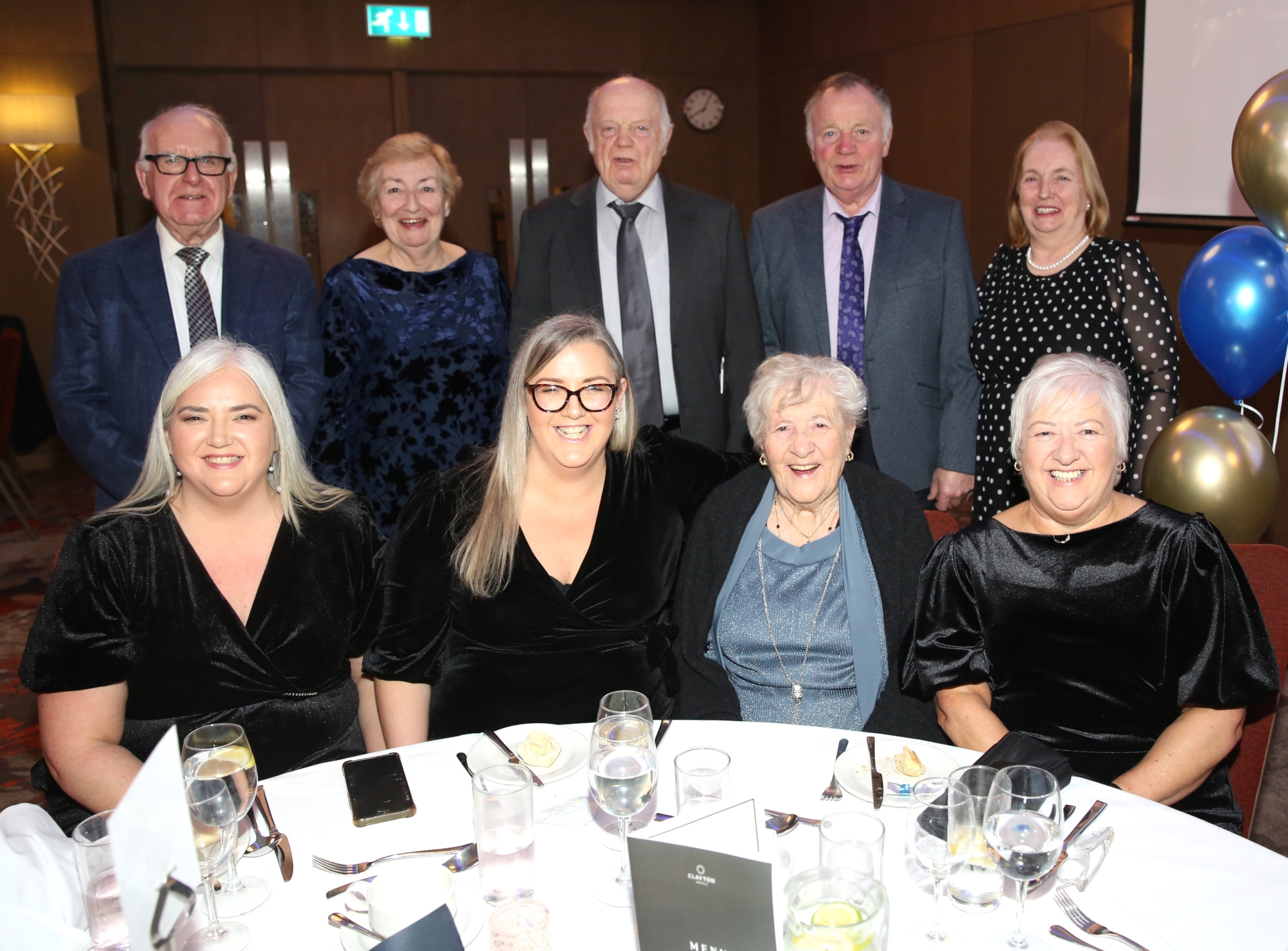 Caption: Front row l to r; Lisa Kearns, Nicole Murray, Mary McKenna (Life President) and Marie Kearns. Back; Aidan Mollaghan, Bridget Murtagh, James Murtagh, Joe & Kathleen Murtagh at the Longford Association in London 70th anniversary dinner dance in the Clayton Hotel, Chiswick, London on Saturday, January 31, 2026 Picture: Lucia Butler